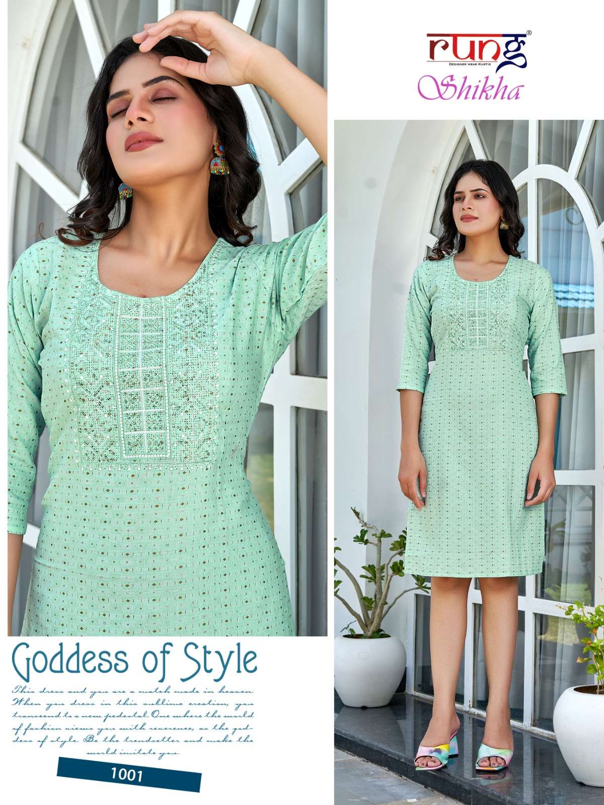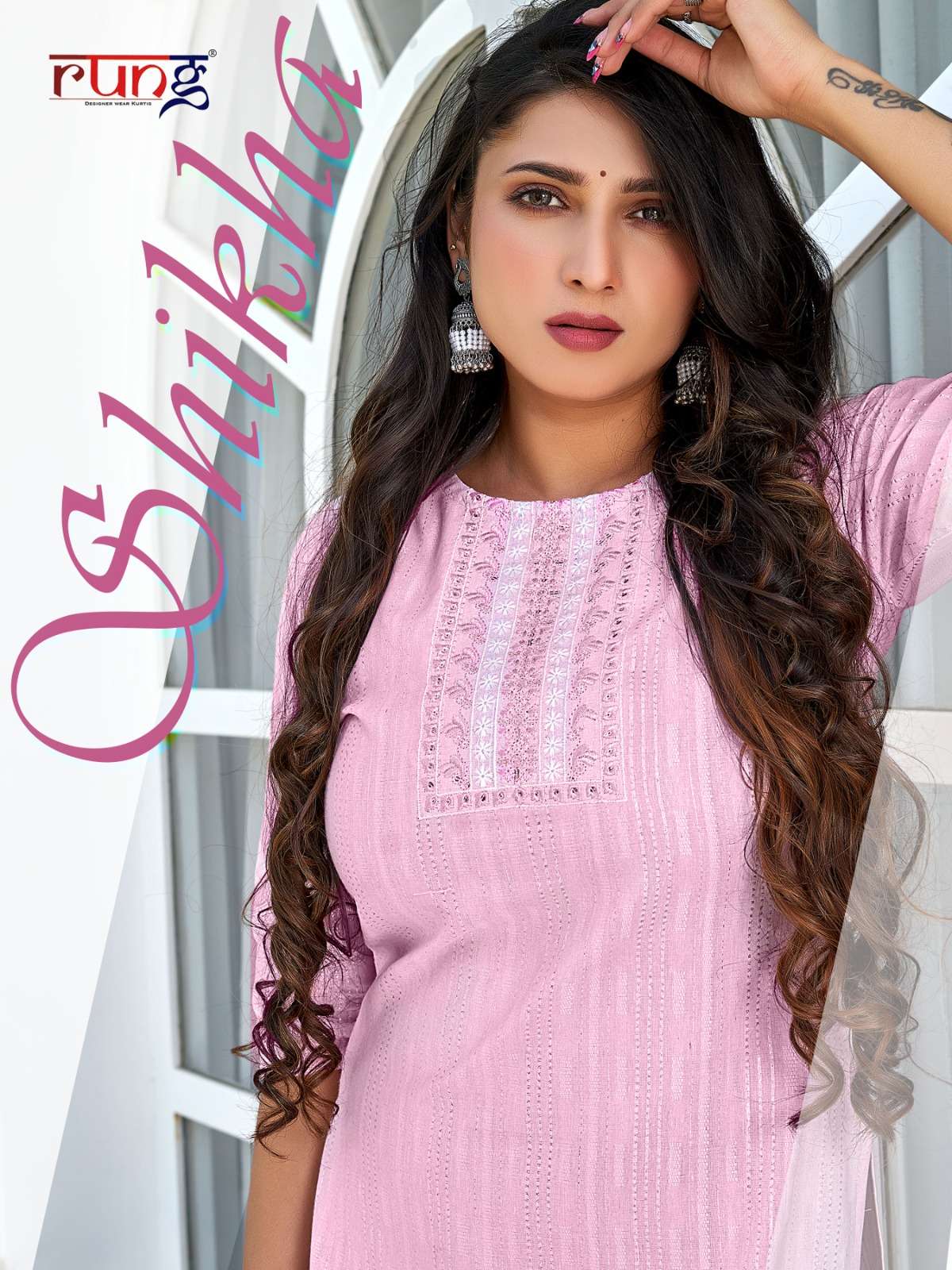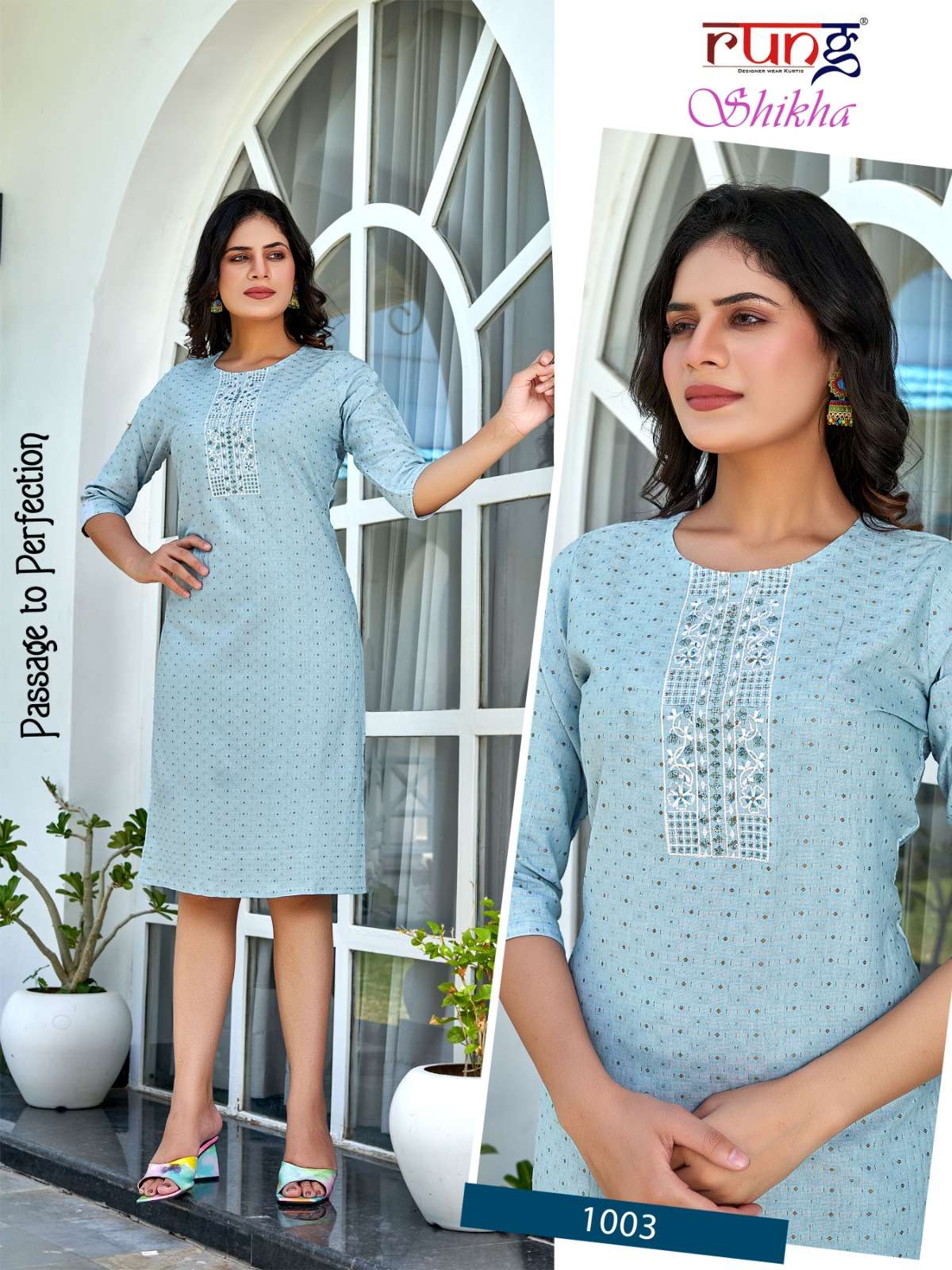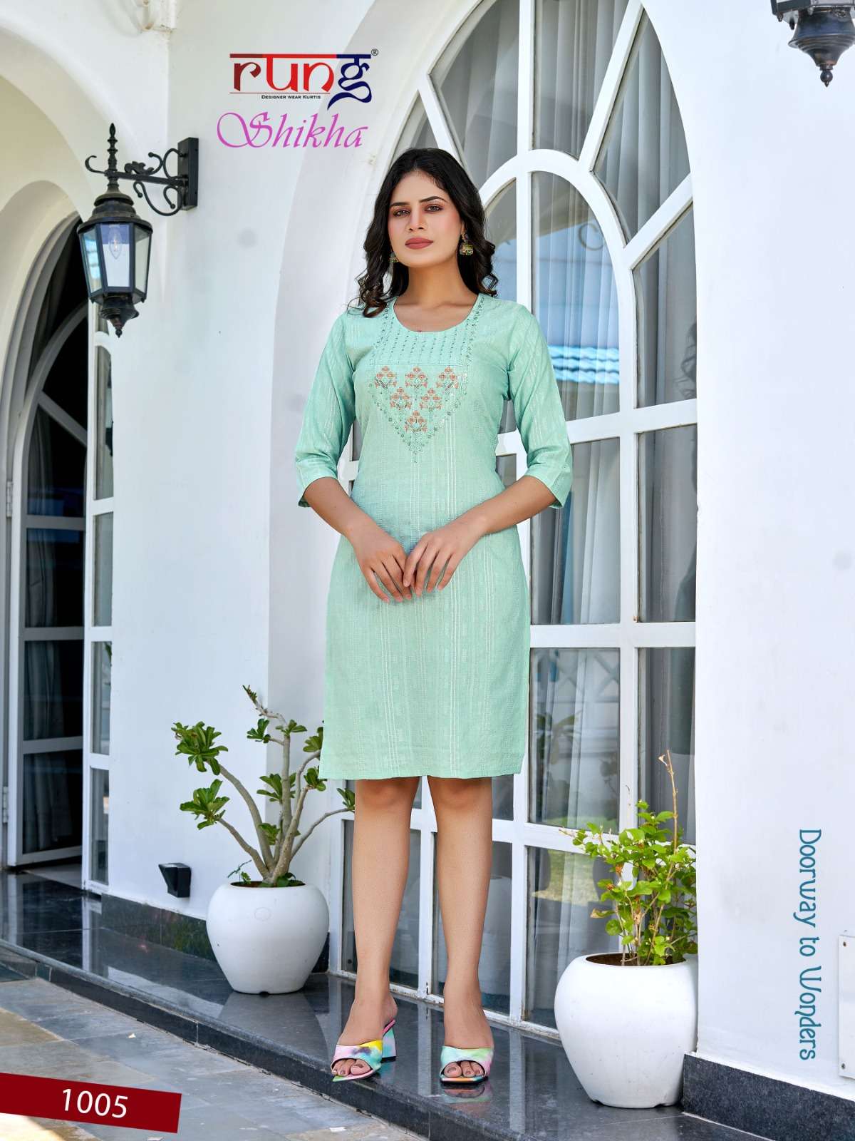 rung launch shikha fancy neck work cotton readymade kurtis online supplier