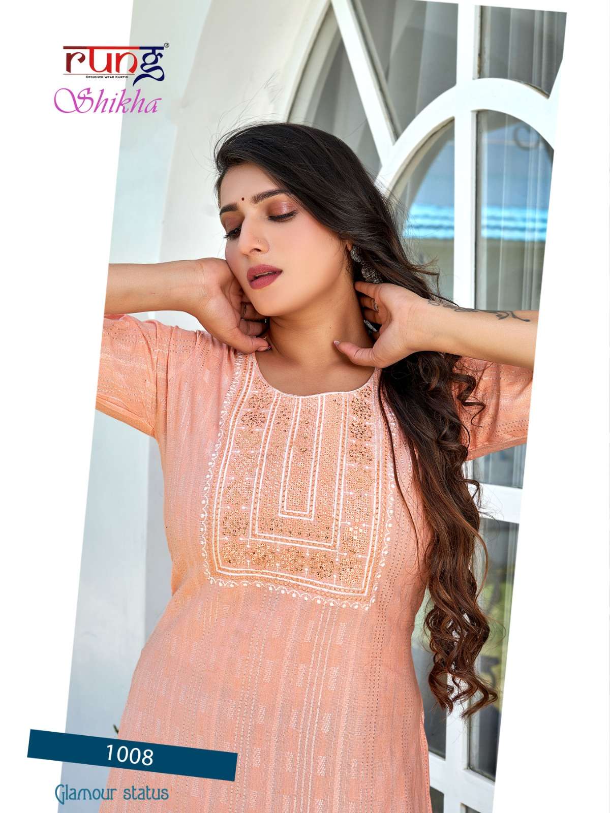 RUNG PRESENTS OUR NEW KURTI CATALOGUE 🥦SHIKHA🥦 FEBRIC.. 8️⃣ PEICE SET SIZE. M(38). L(40). XL(42). XXL(44) RATE |