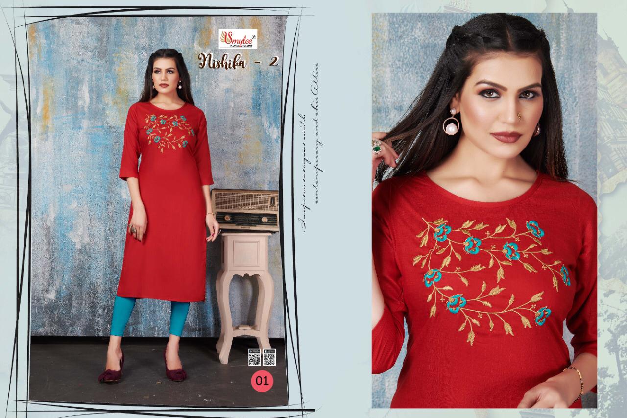 Rung Nishika Vol 2 Heavy Rayon Slub Print Formal Wear Kurti At Lowest Rate