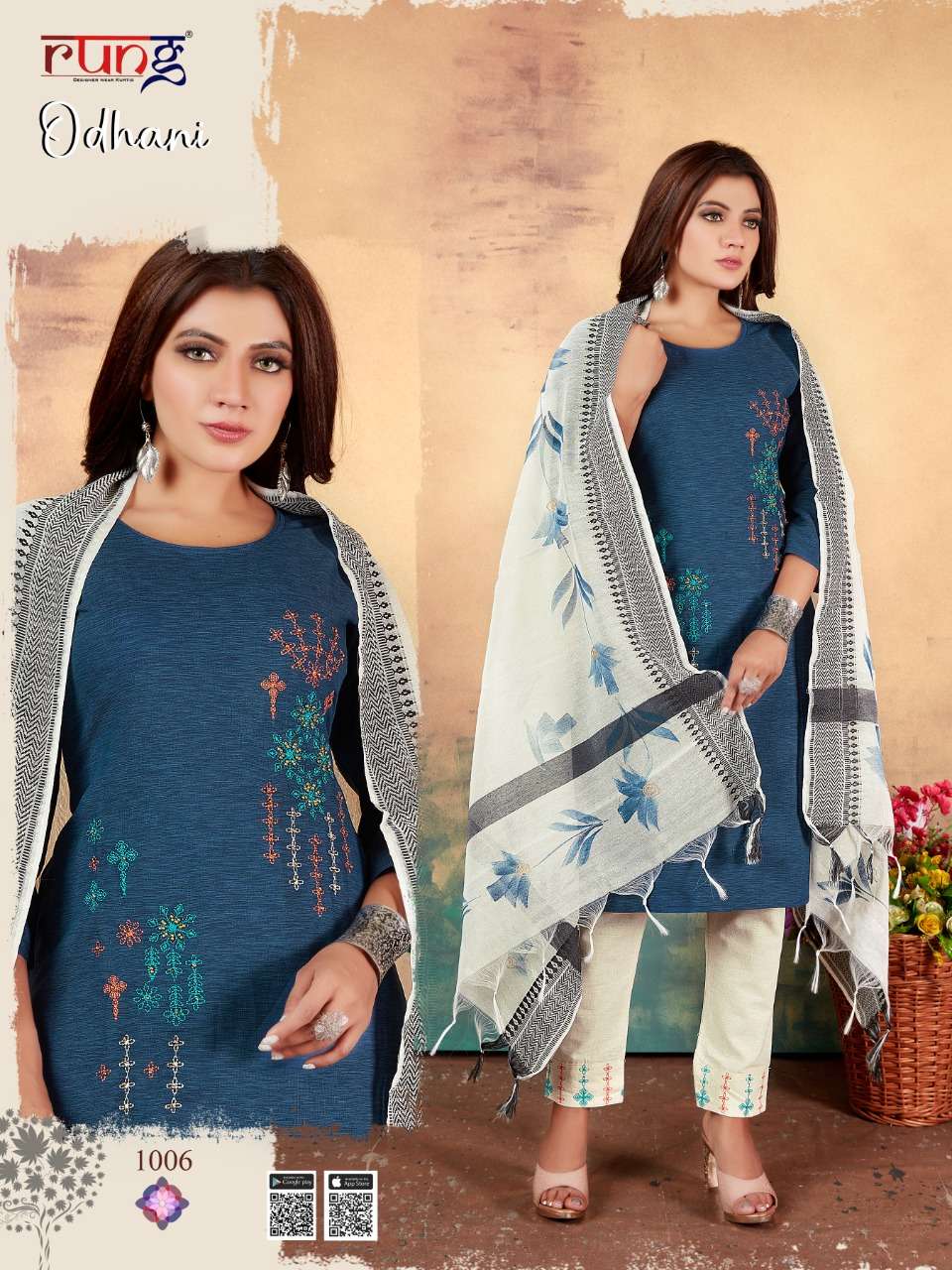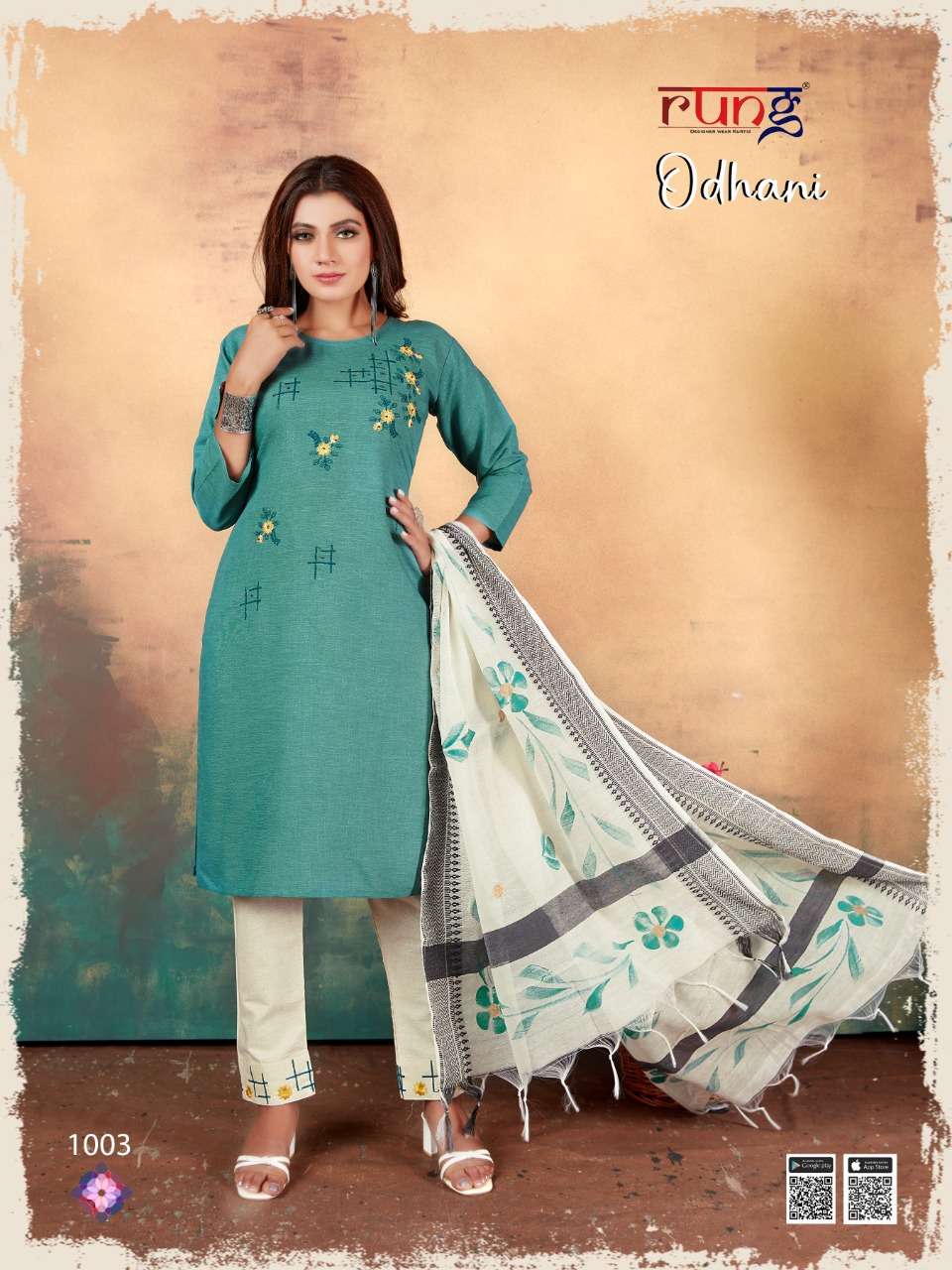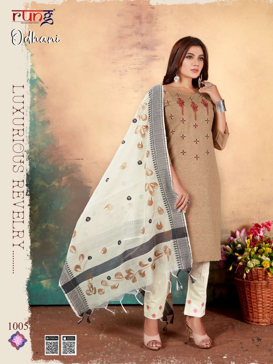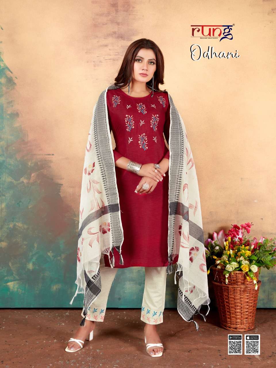 Brand - Rung FEBRIC. TOP.. Heavy MILANZ RIYON WITH MANUAL EMBROIDERY DUPATTA brush pant DUPPATA