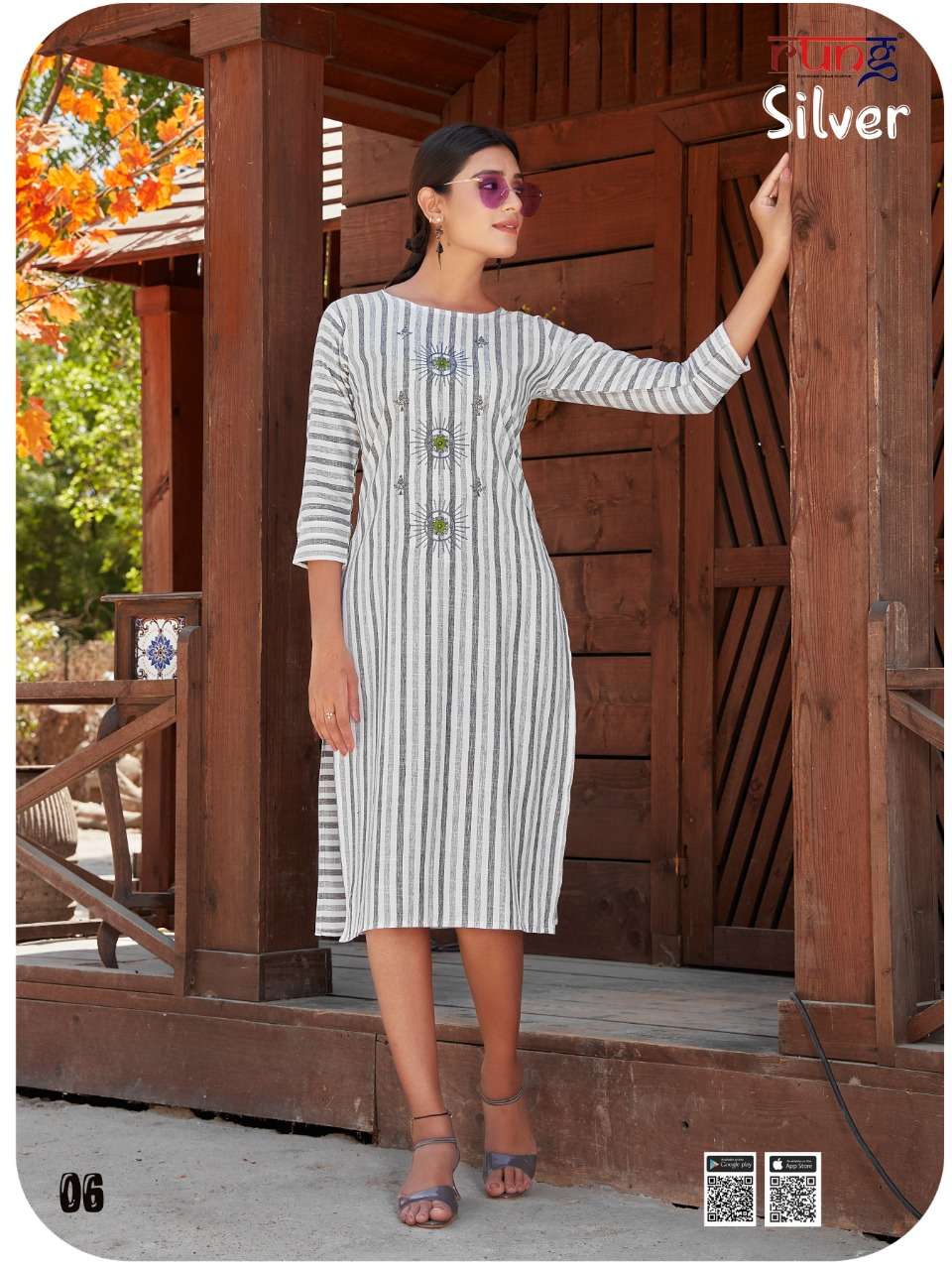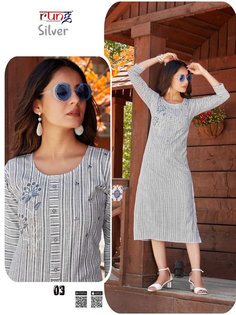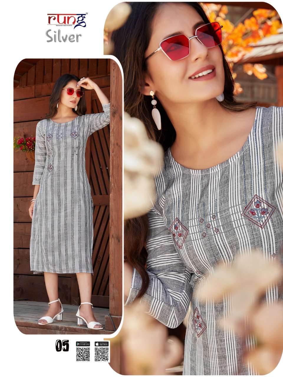 Rung Silver Rayon Daily Wear Fancy Kurtis
