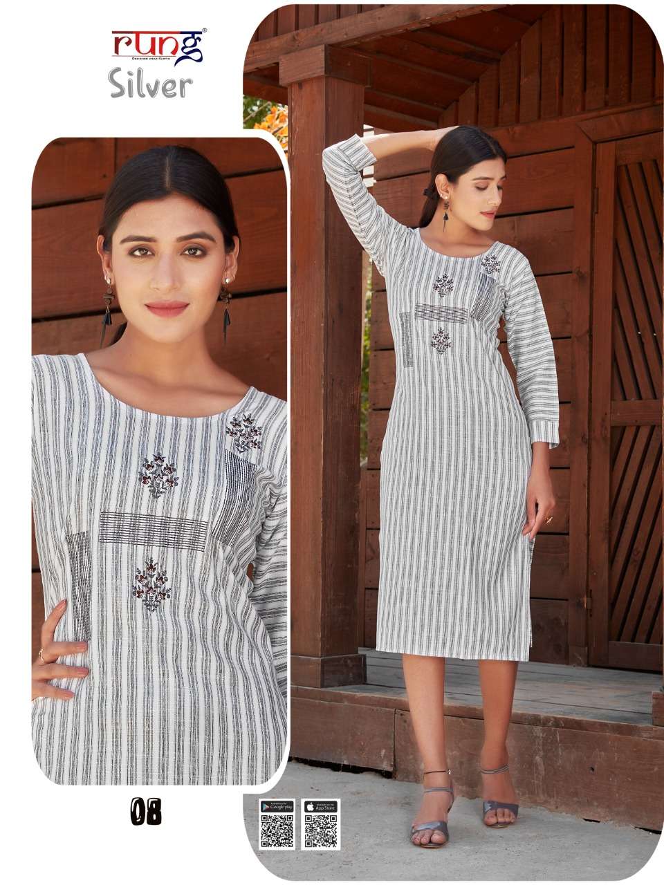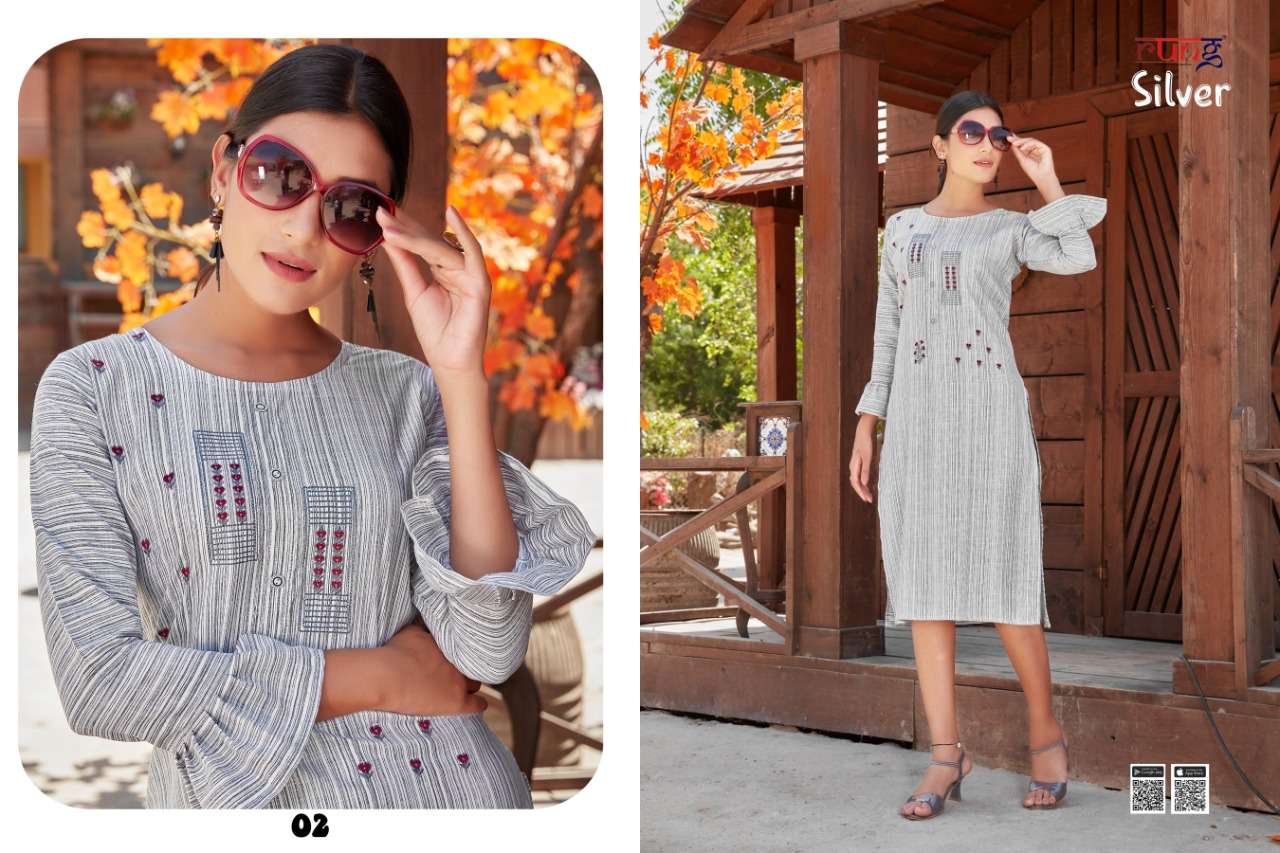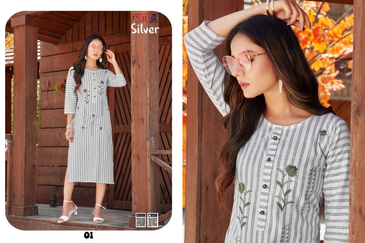 Rung Silver Rayon Daily Wear Fancy Kurtis