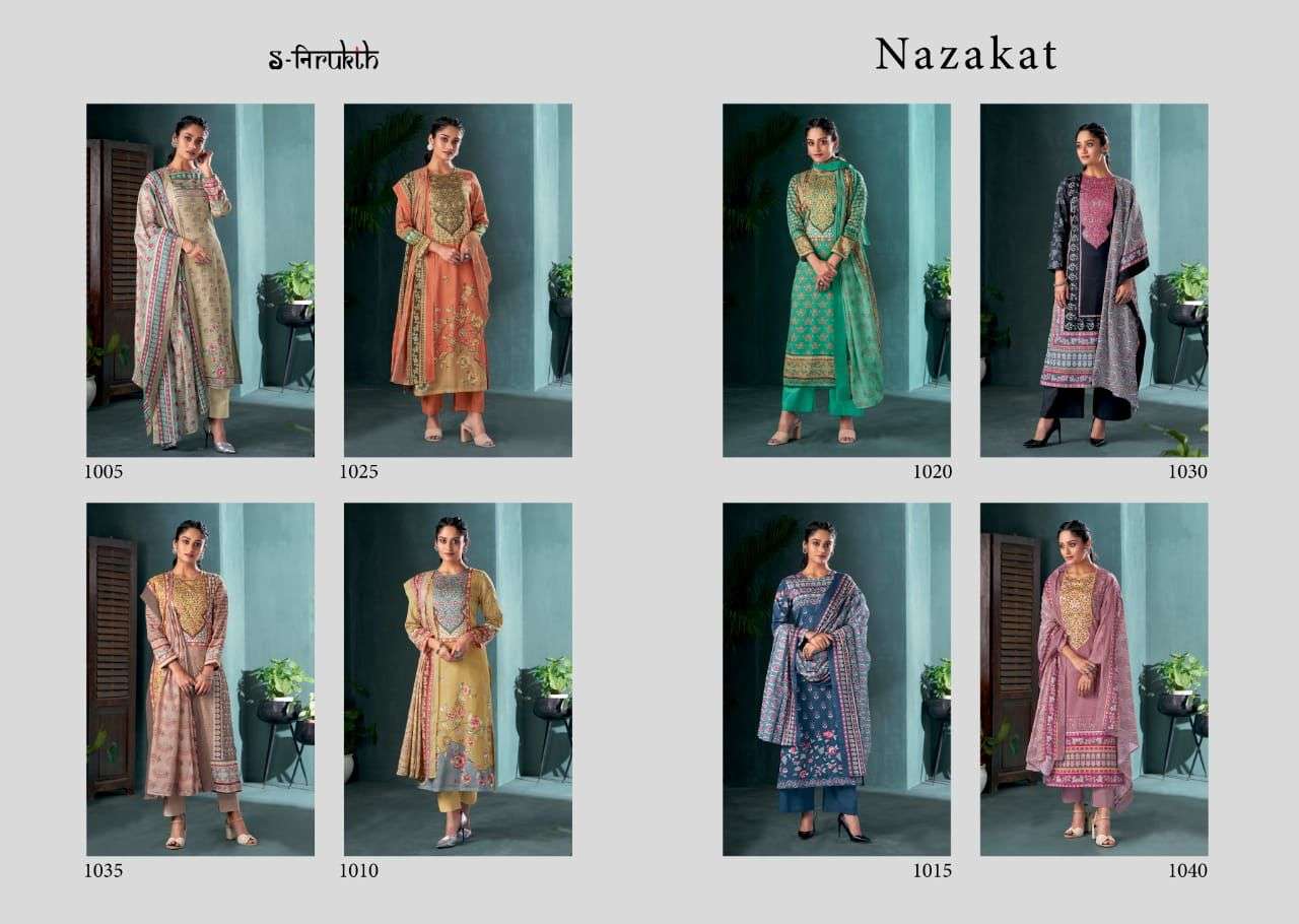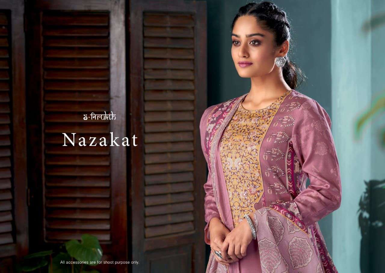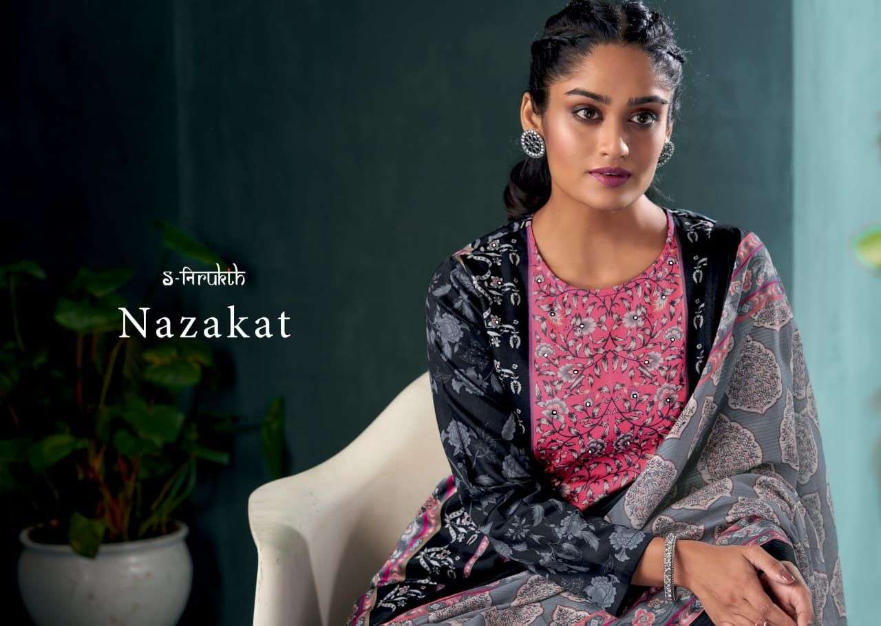 s nirukth nazakat cotton satin printed mirror work dress materials
