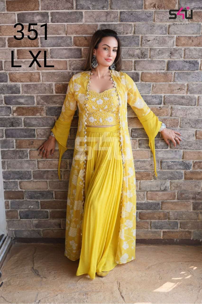 s4u 351 design combo set of exclusive crop top with plazzo and jacket shrug