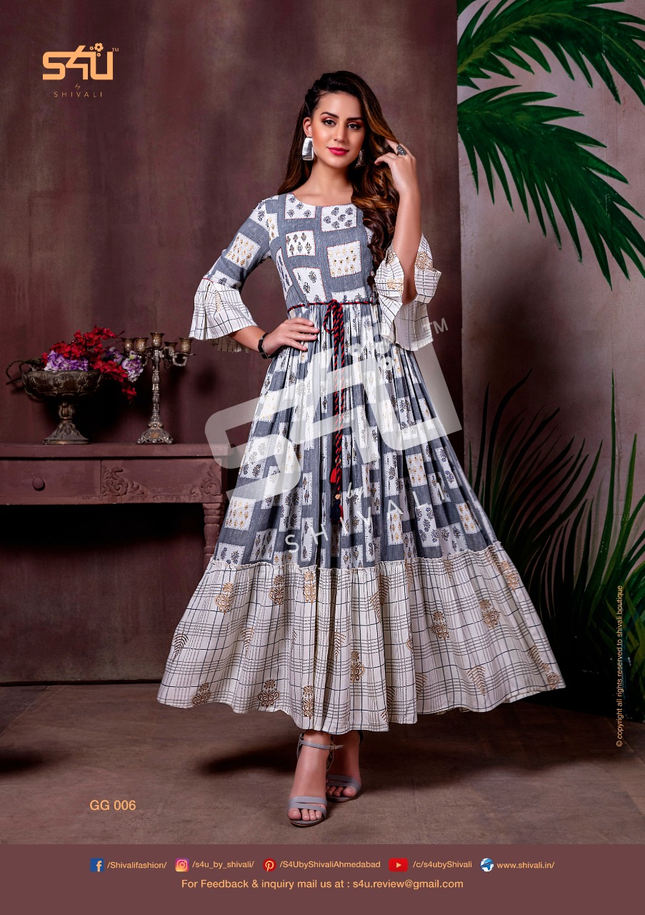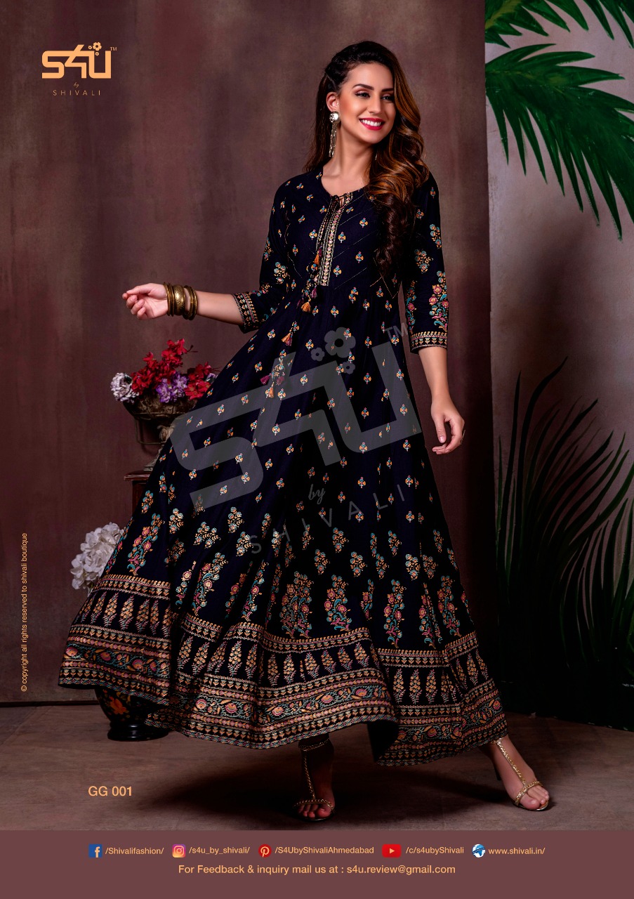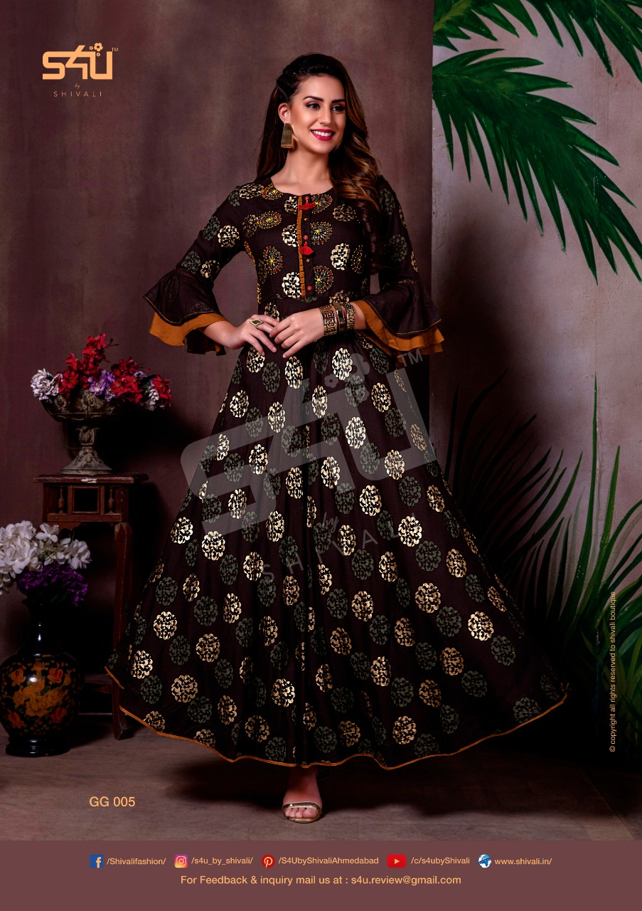 S4u By Shivali Launch Gold Gowns Exclusive Stylish Long Kurti Wholesale Price