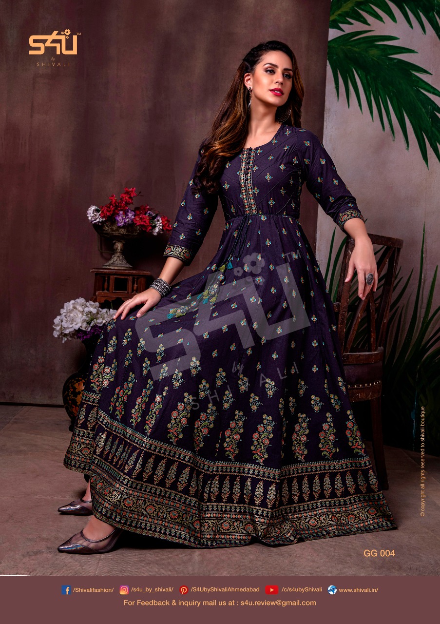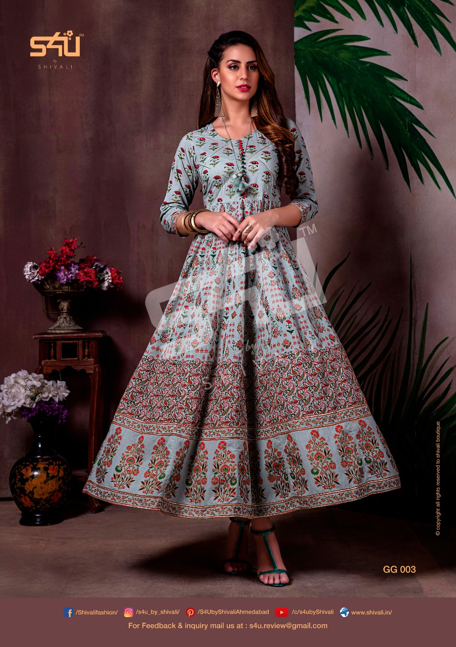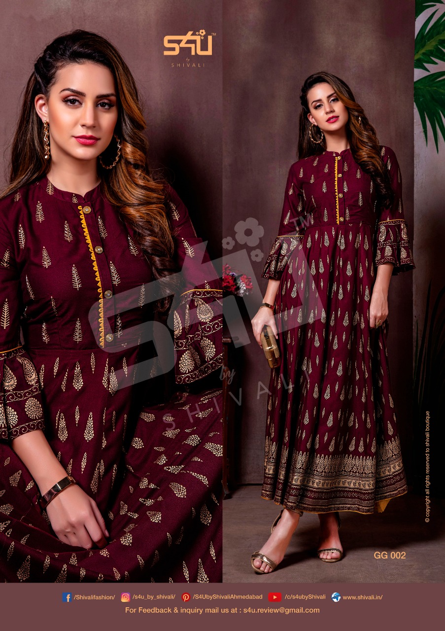 S4u By Shivali Launch Gold Gowns Exclusive Stylish Long Kurti Wholesale Price