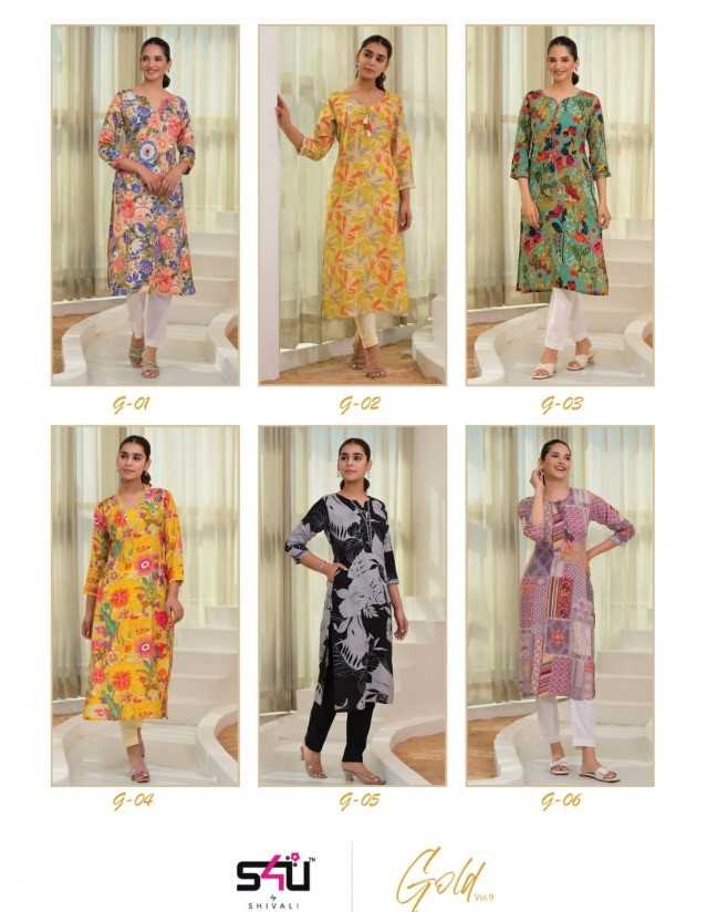s4u gold vol 9 readymade fancy summer wear straight kurti collection