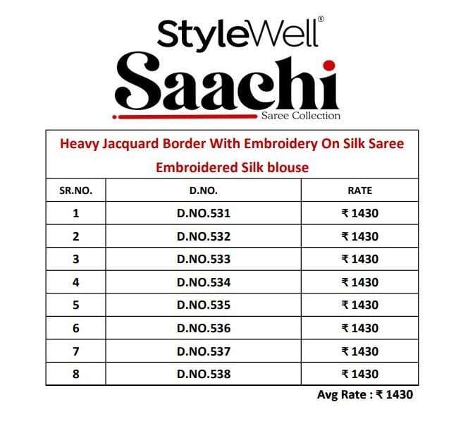 OFFER OFFER OFFER 🆕!! New Saree Catalogue Launch !!🆕 Saachi Saree - Jacquard Border With Embroidery On Silk Saree Set to set RATE 1430/- OFFER RATE : 860/- READY TO SHIP 🚢🚢 |