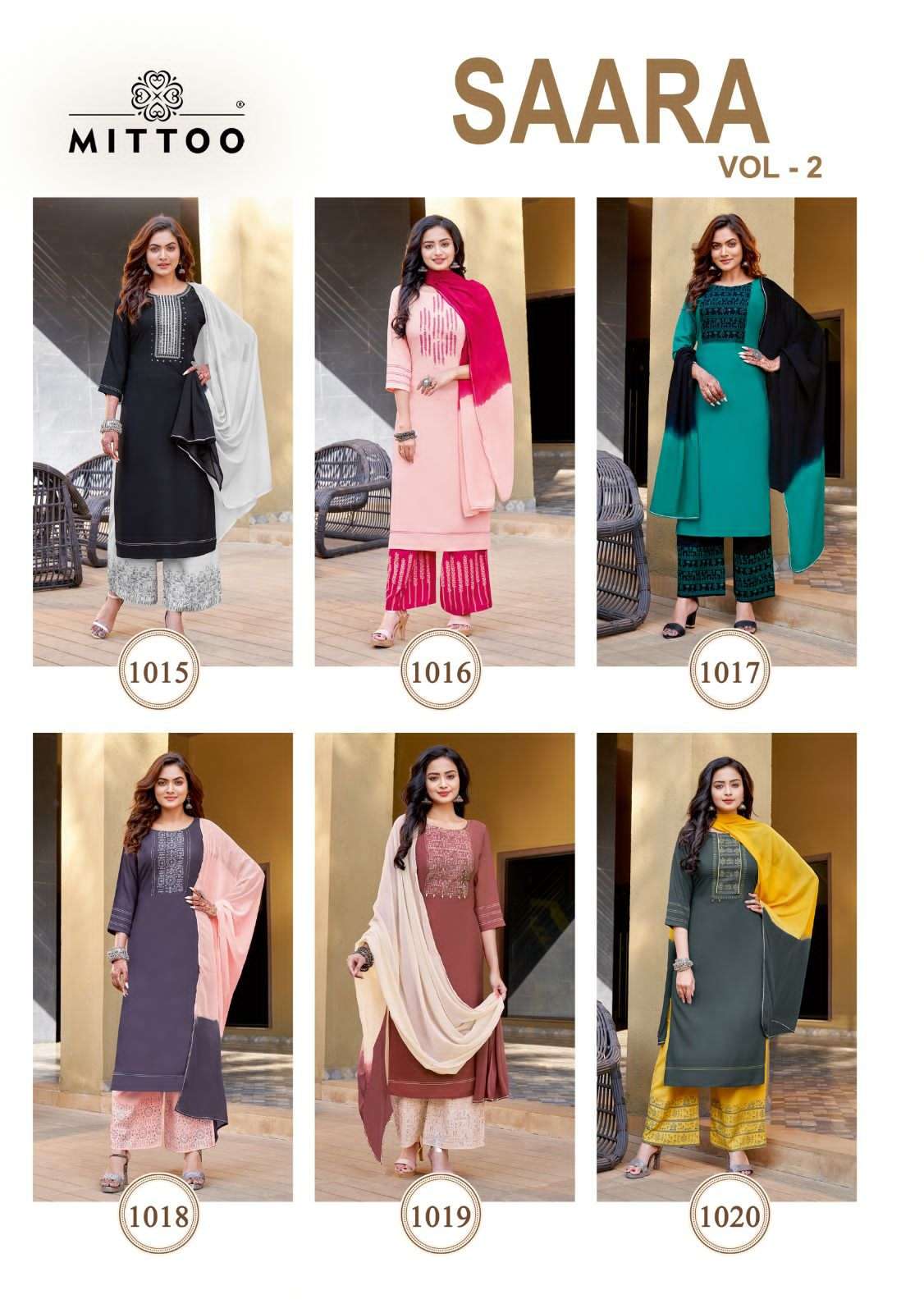 Brand Name : MITTOO Catalog : Saara vol 2 No of Design : 6 Fabric Details Size : S(36), M(38), L(40), XL(42), XXL(44) Rate : 895 / Pic + GST Dispatch with in 3-4 days |