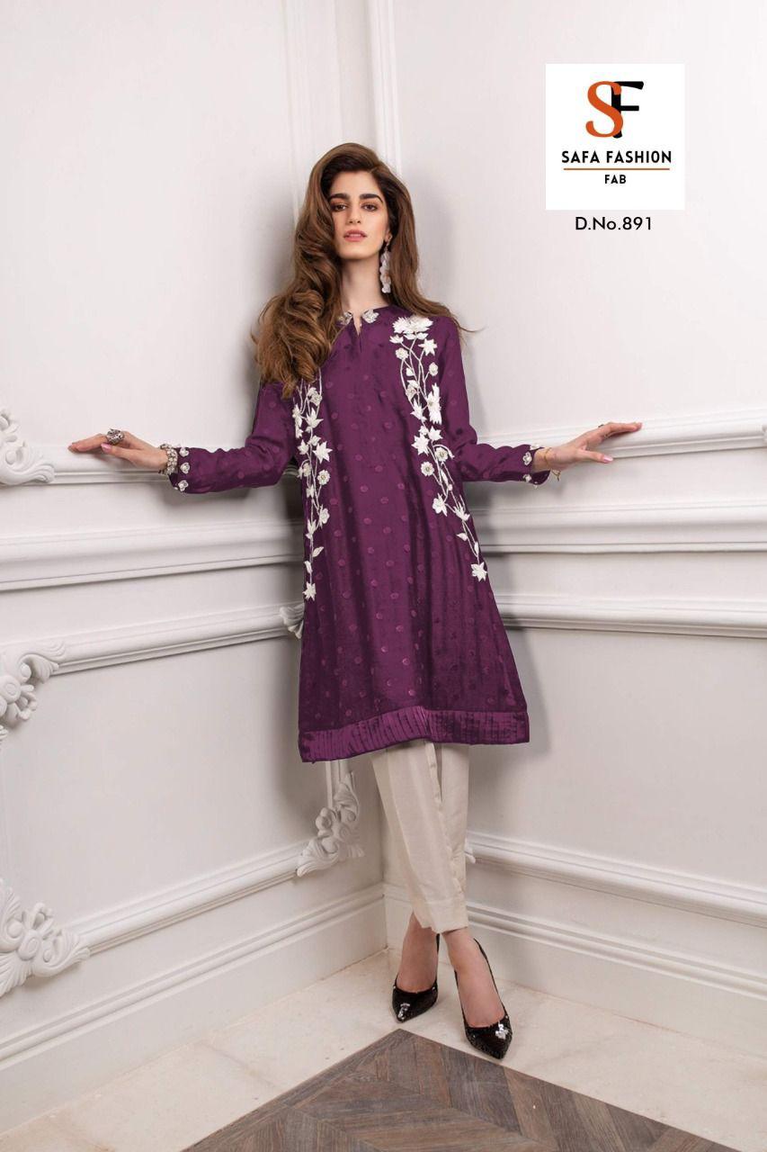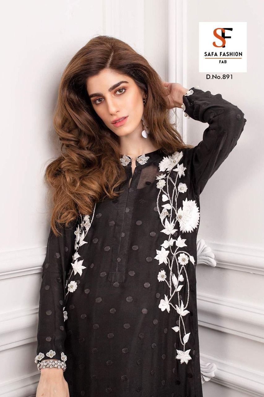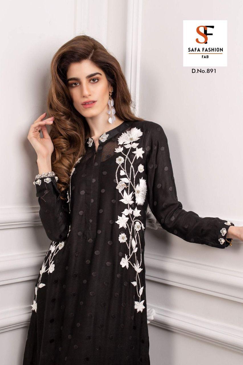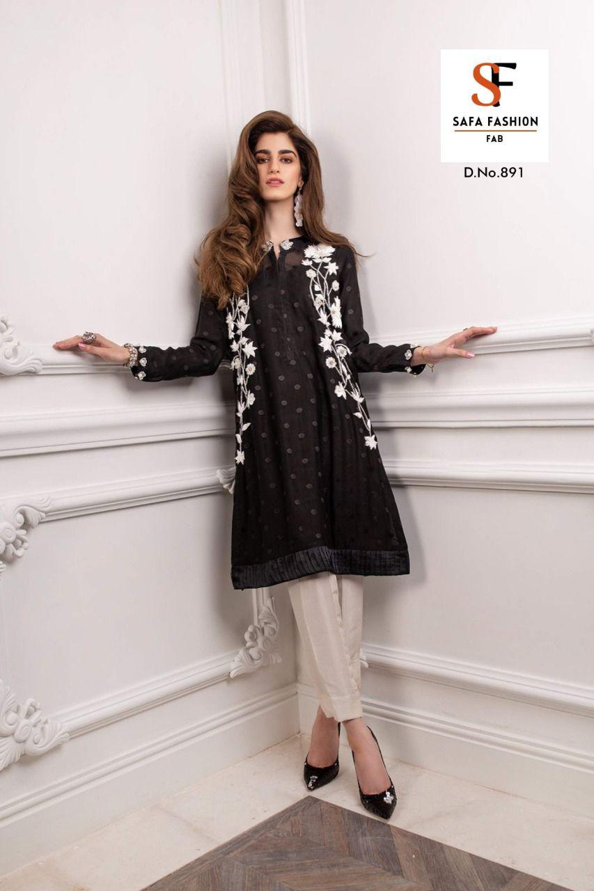 💞We are Introducing our LUXURY PRET FORMAL WEAR COLLECTION To Make You Unique and Classy.. 💞With Supirier Quality and Affordable Price ➖➖➖➖➖ S.F.891 by SAFA FASHION FAB ➖➖➖➖➖➖ 🔴 Description 🔴 〰〰〰〰〰〰〰 Designer Embroidered Tunic with Sleeves paired with *Designer Cigarette pants*With Applic Diamond work 🔴 Details🔴 〰〰〰〰〰〰〰 ✨ Top:- Fox gorgette Fabric ✨ Bottom :- Cotton Stretchable Fabric ✨ Inner :- Santoon ✨ Colour Black,Majanta,Rama ‼️ Size Chart‼️ ✨ Top xl size chest (42) ✨ Bottom xl size (37-39) ✨ Rate- 950/- Full set available ⚡⚡⚡Colour may slightly vary due to light effect⚡⚡⚡ 🌹 Book Fast Limited Stock 🌹 |