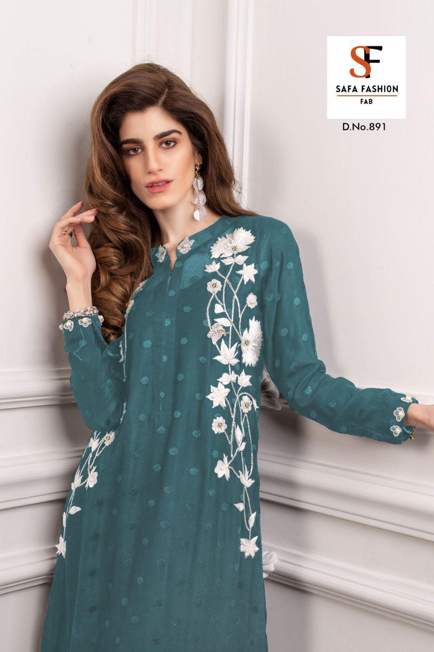 Safa Fashion Fab Launch Sf 891 Georgette Designer Exclusive Kurti With Cigarette Pant