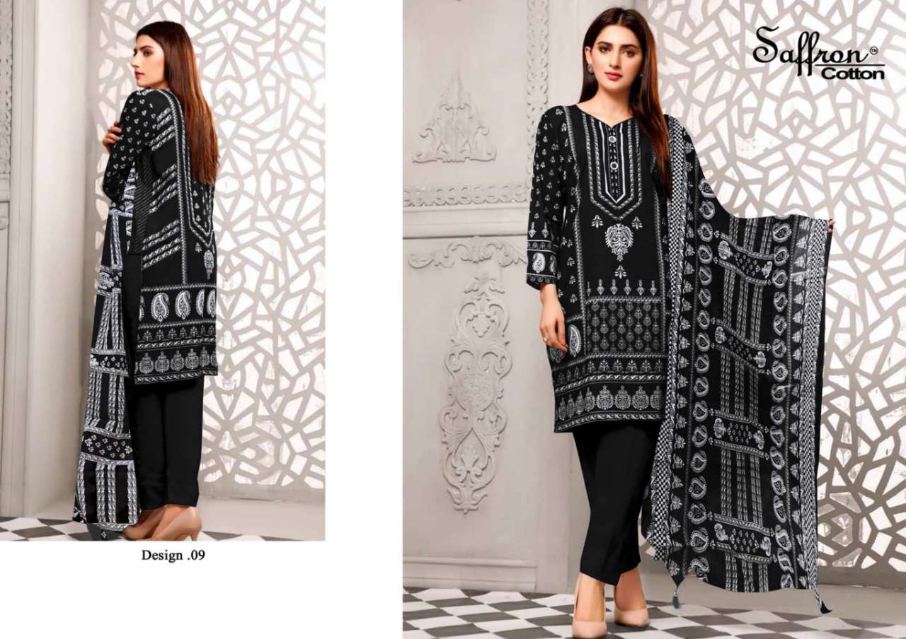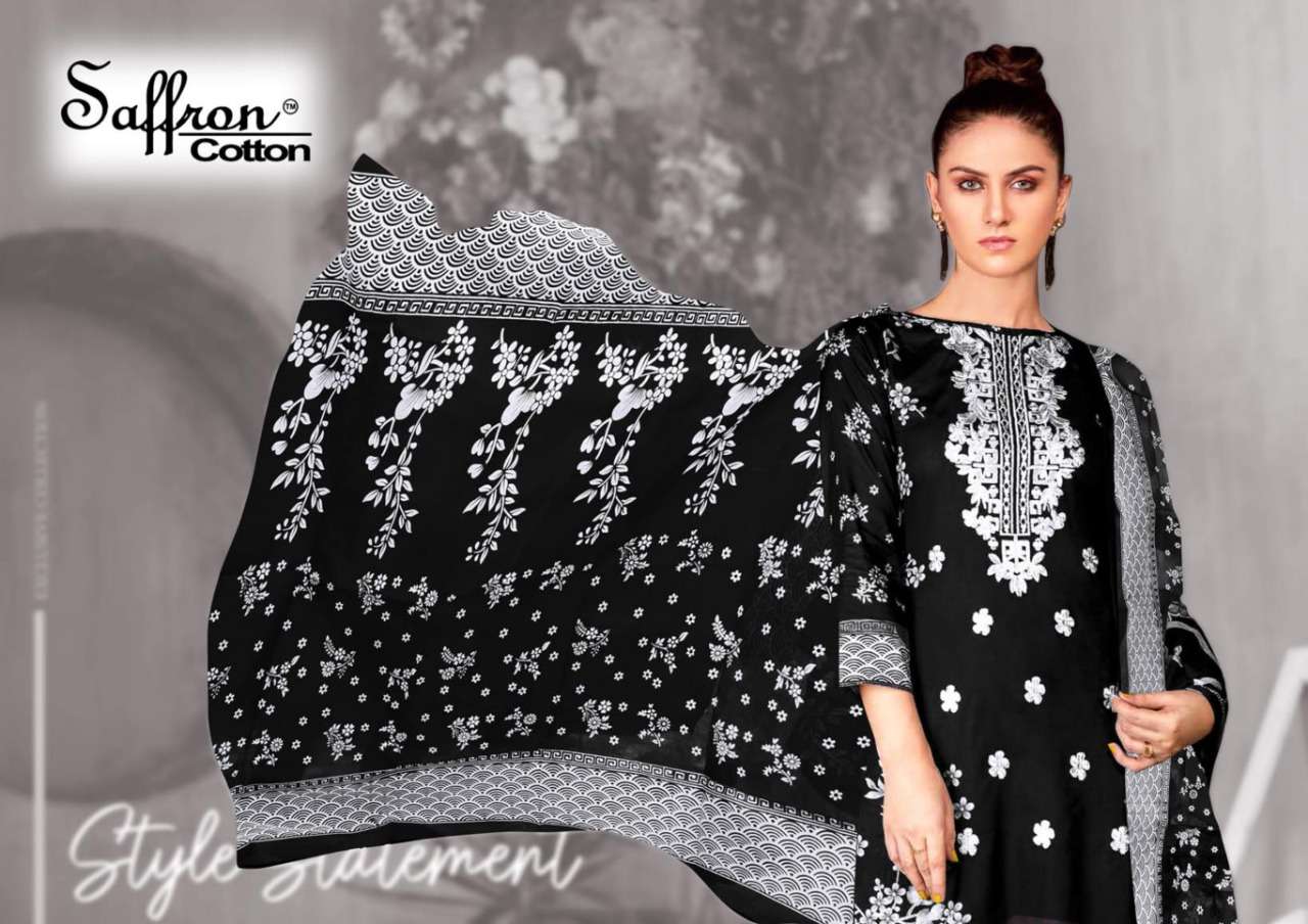 HERE IT COMES *â¥YOUR FAVOURITE BRAND⥠*               SAFFRON COTTEN BLACK AND WHITE            Pure cambrice collection with mal mal duppata Top : Pure Cambrice HEWY QWALITY (cut:2.25 mtr) Bottom : pure cotten cut:2 mtr) Dupatta: Pure Cotton Mal Mal (cut 2.25 mtr) Designs : 10/ With attractive pouch n ladher bag packing Rate - 360/- Booking Open |