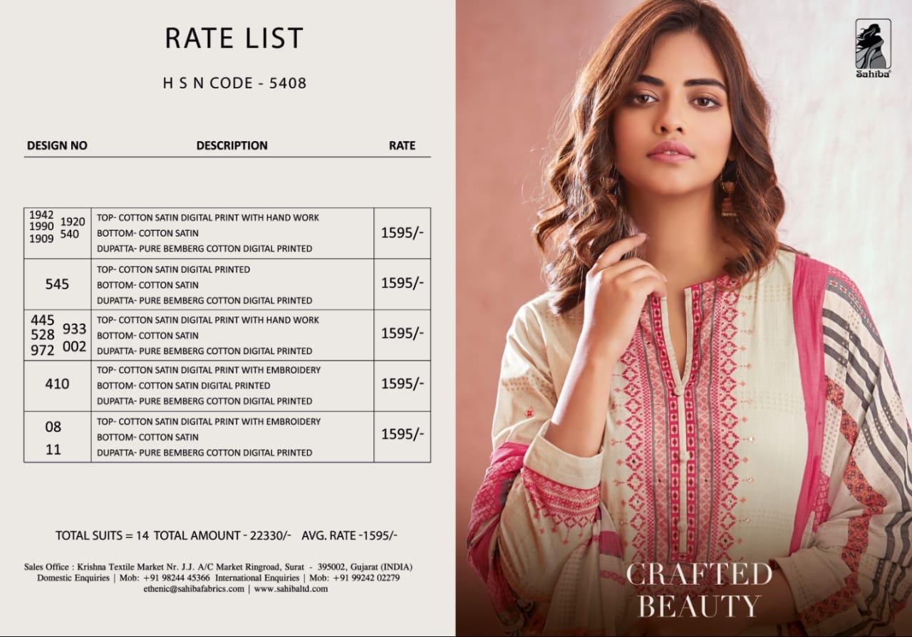 Sahiba Presents Latest Collection Launched on 26-08-2020. Presenting Beautiful collection of 14 PCS with Unstitched .