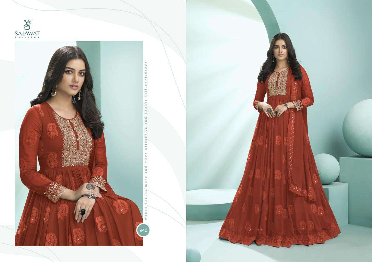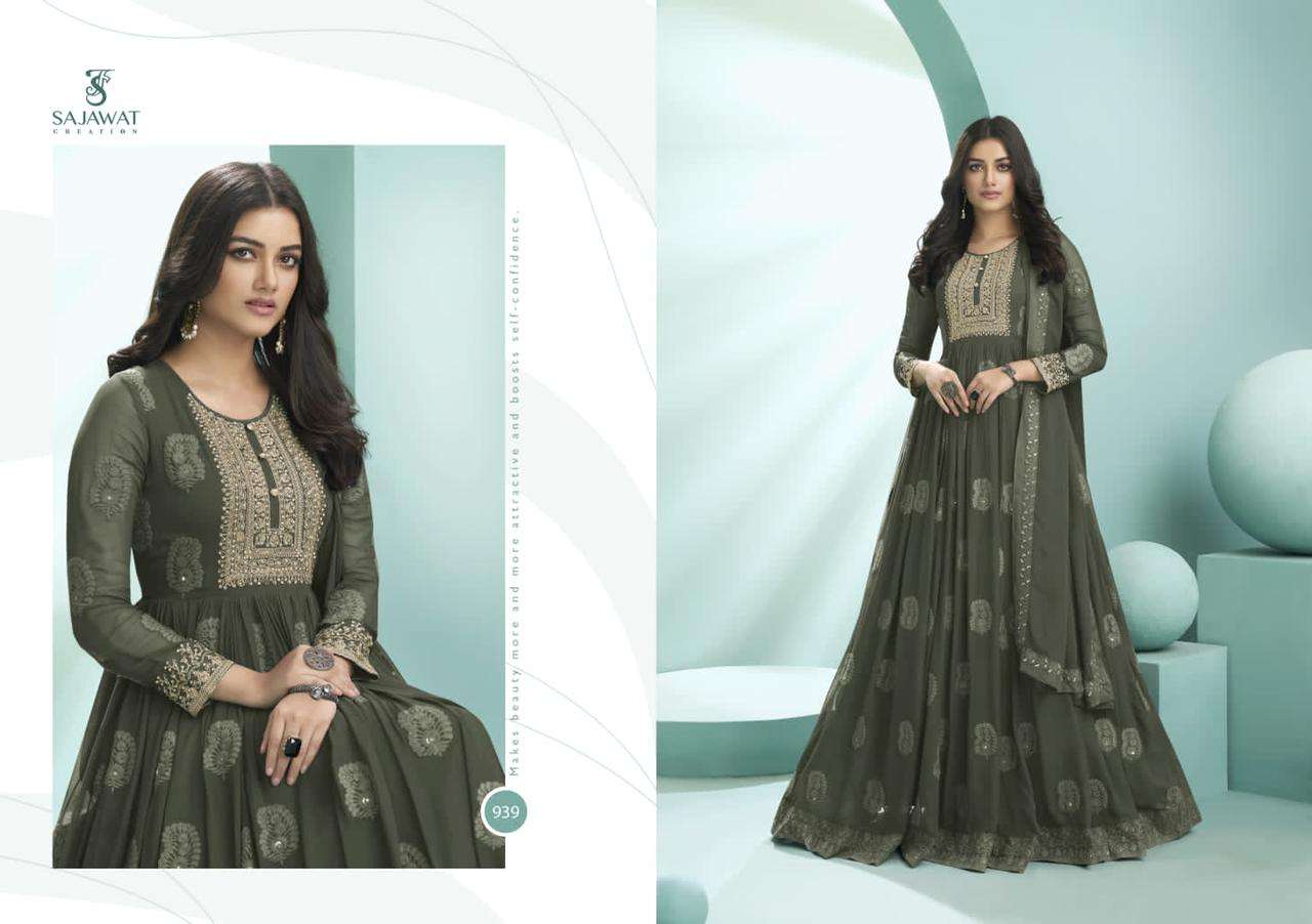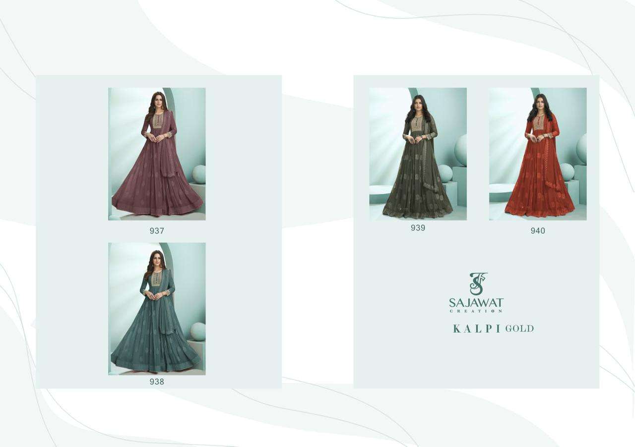 sajawat kalpi gold readymade gown with bottom and dupatta set