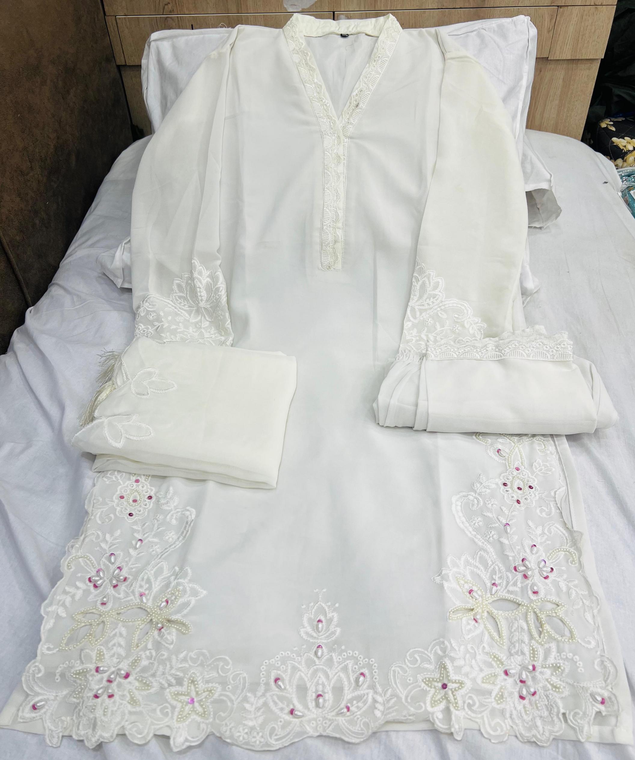 hello SAJIDA DESIGNER SUIT*BY *lounching new style leser work dress *READYMADE COLLECTION ALK - 114 -A-B-C-D Top - HEVAY GEORGETTE WITH EMBROIDERY WITH KHATLI WORK WITH CUTWORK Bottom - HEAVY GEORGETTE WITH WORK Duptta - HEAVY GEORGETTE WITH WORK WITH LATKAN Rate -1350/-