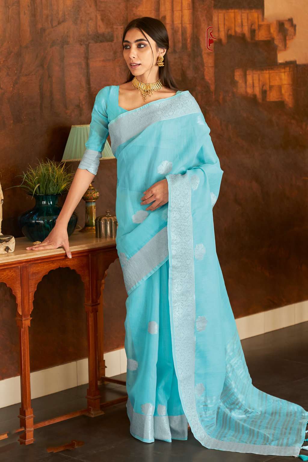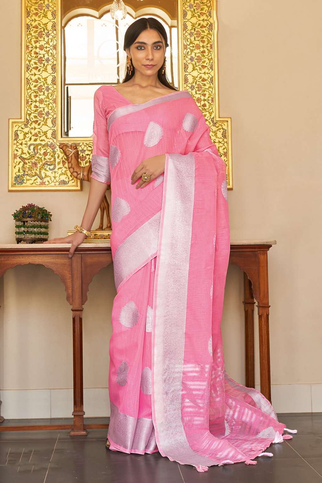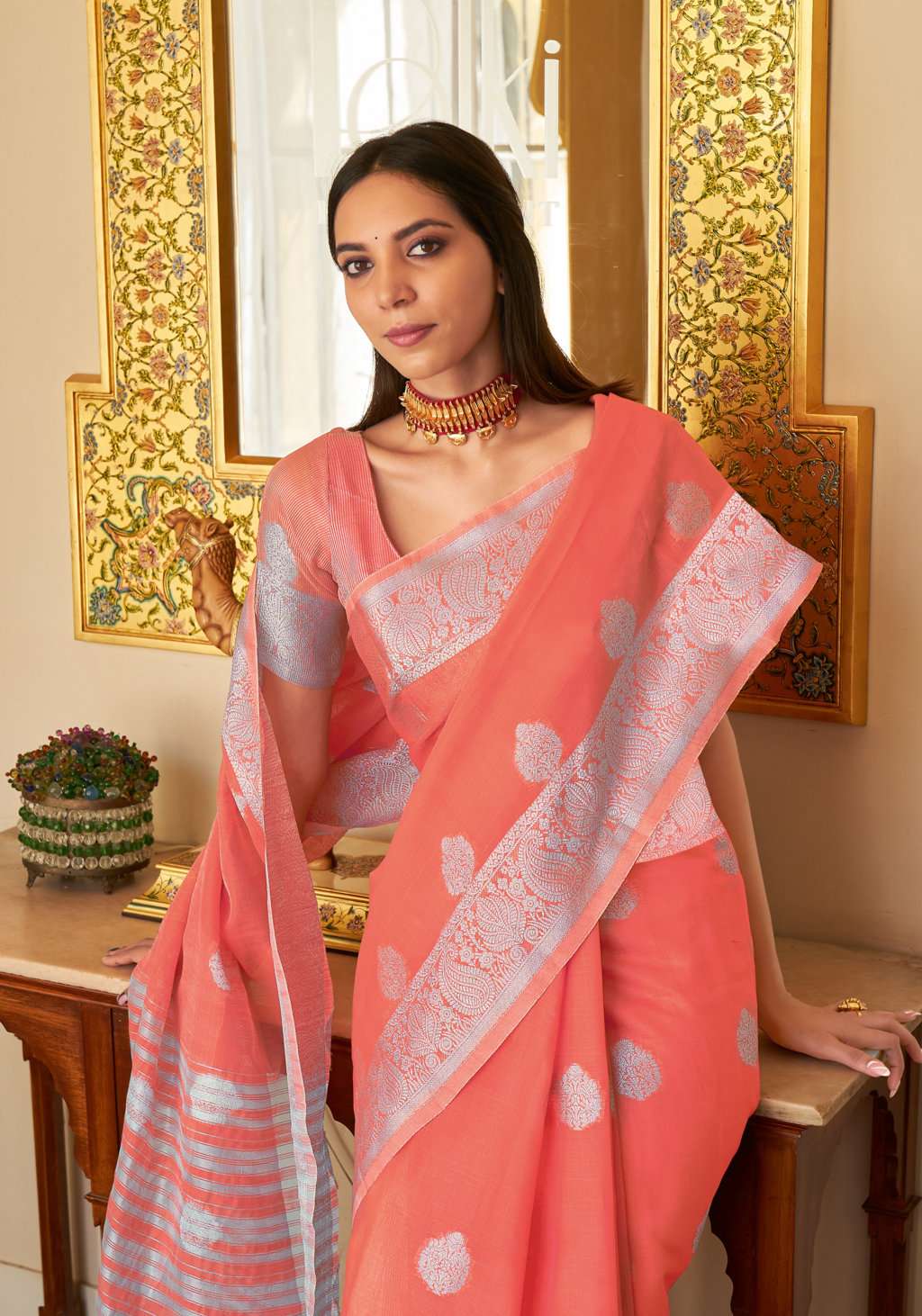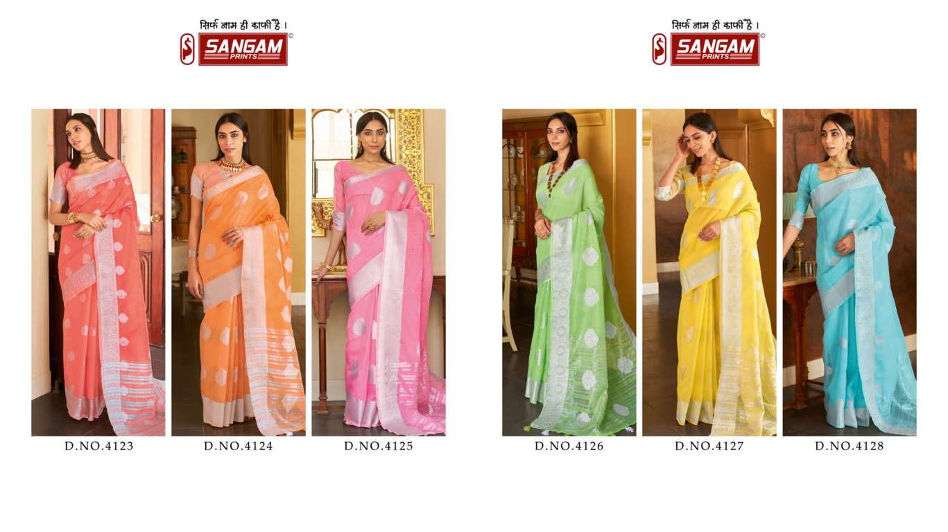 sangam prints silver screen linen zari weaving saris wholesaler