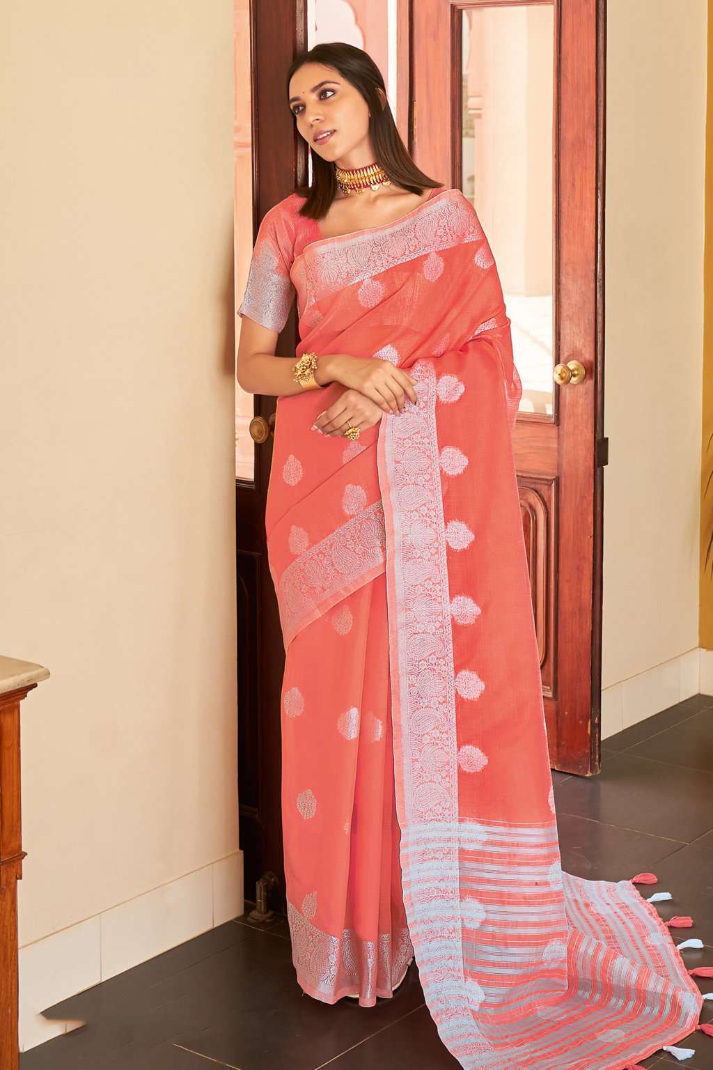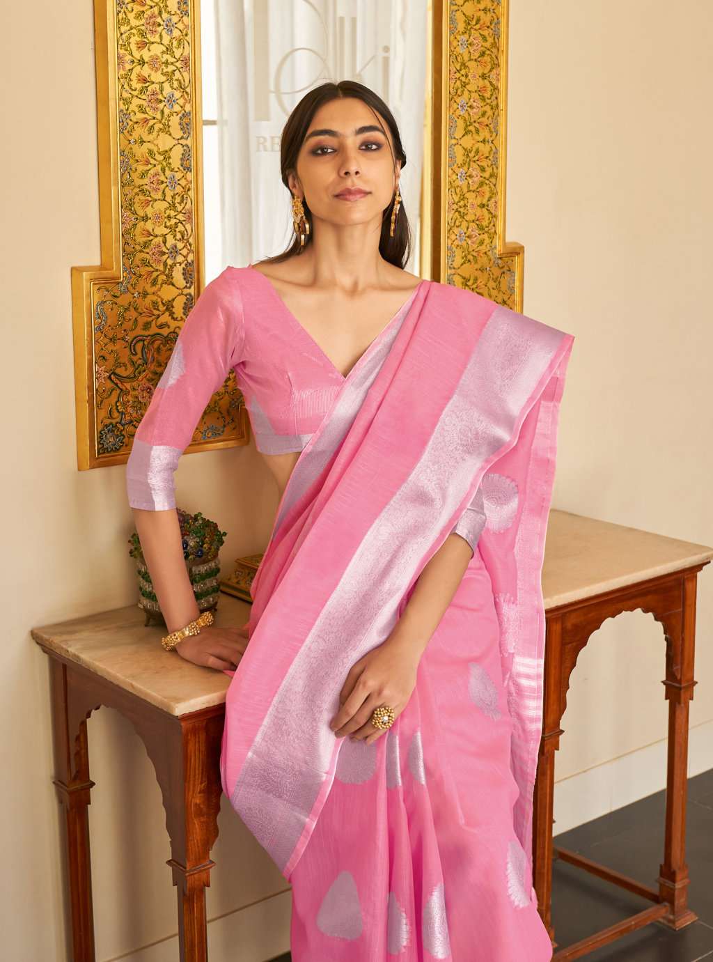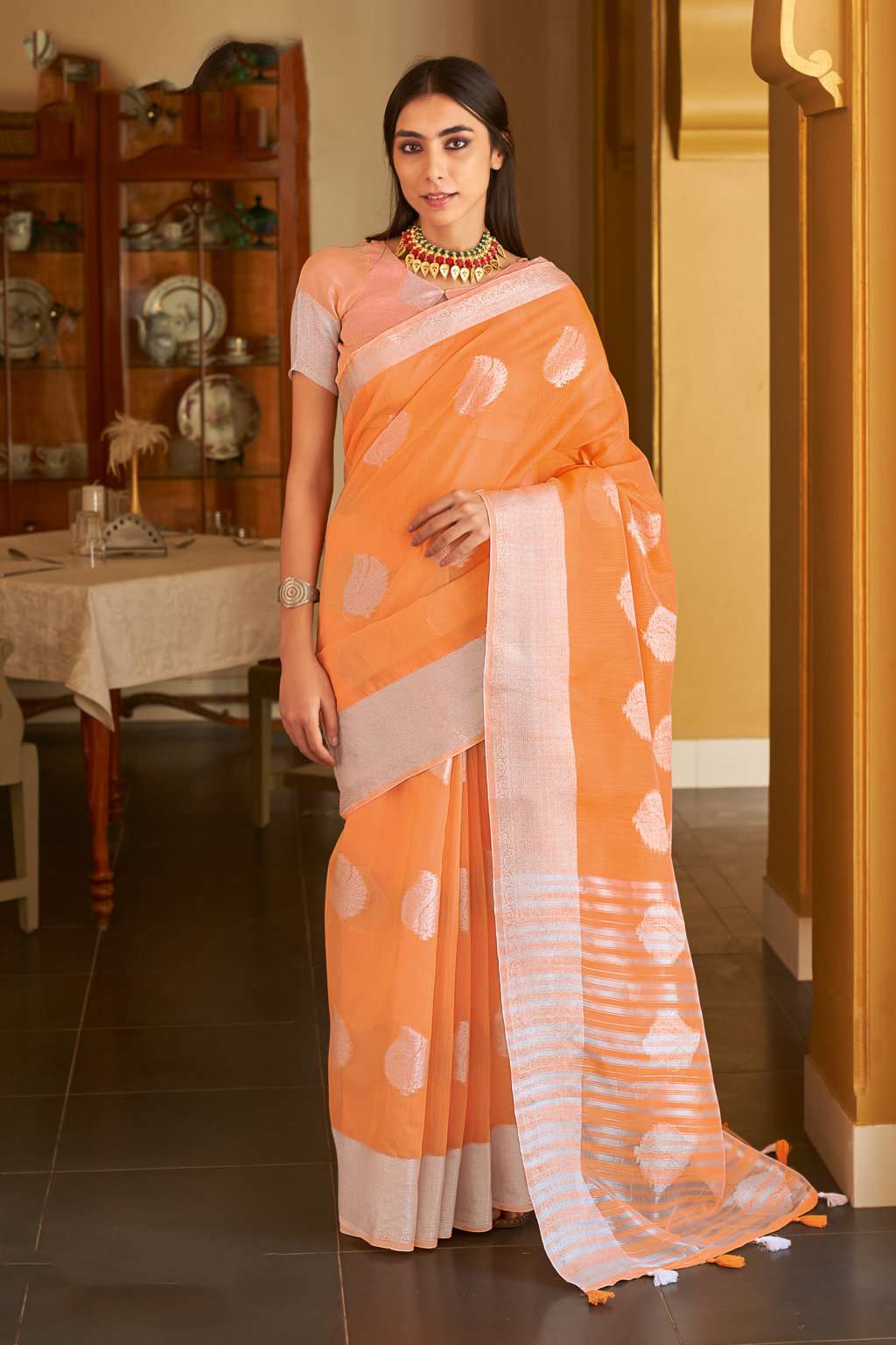 sangam prints silver screen linen zari weaving saris wholesaler