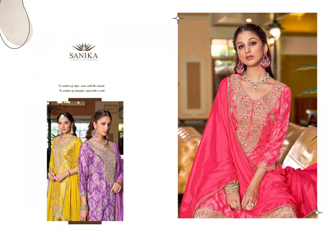 sanika fashion rang razia chinon silk fully stitch designer plazzo style dress