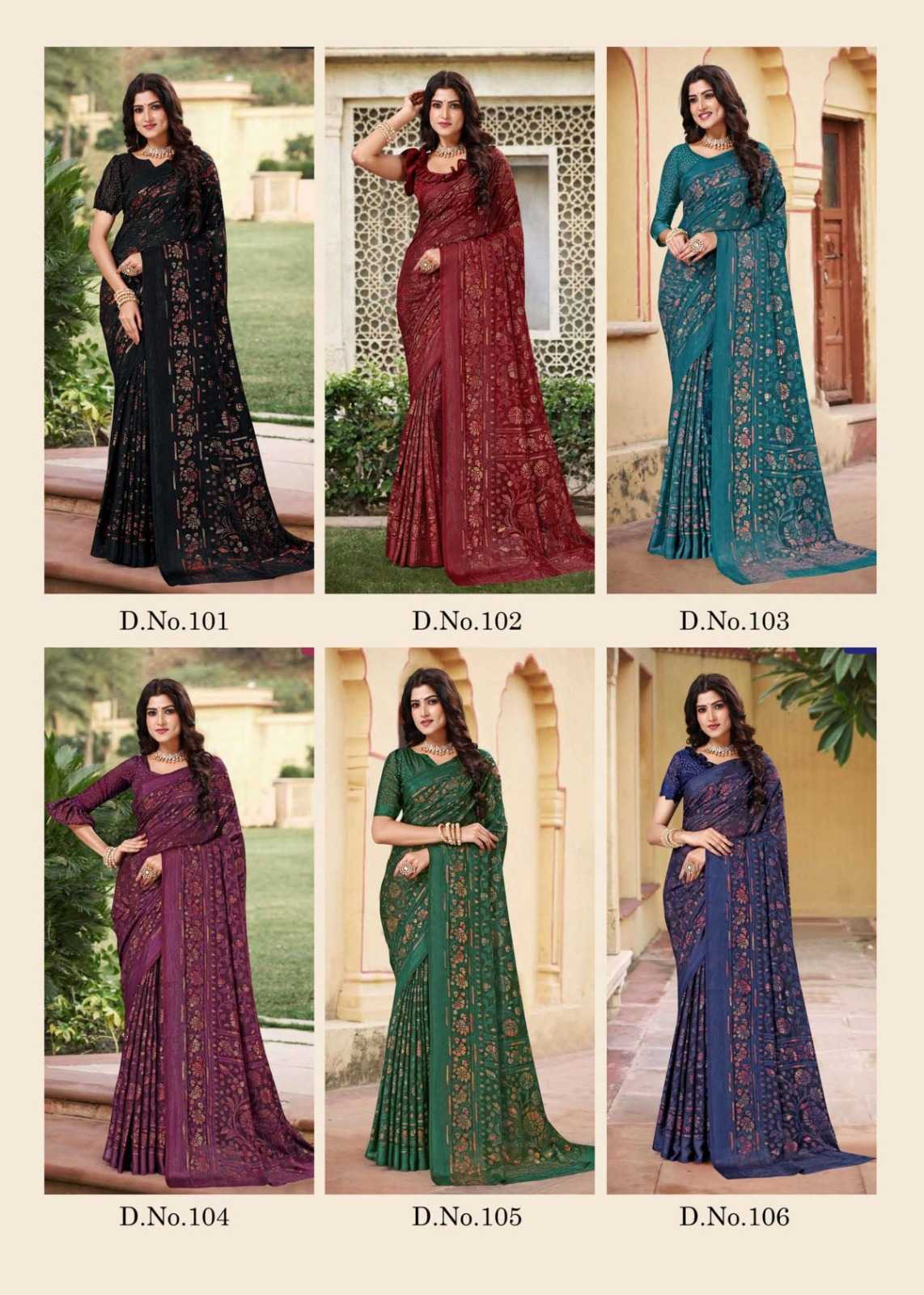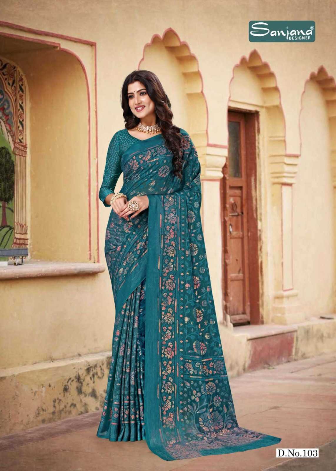 sanjana designer khushi vol 1 beautiful shimmer brasso sarees catalog