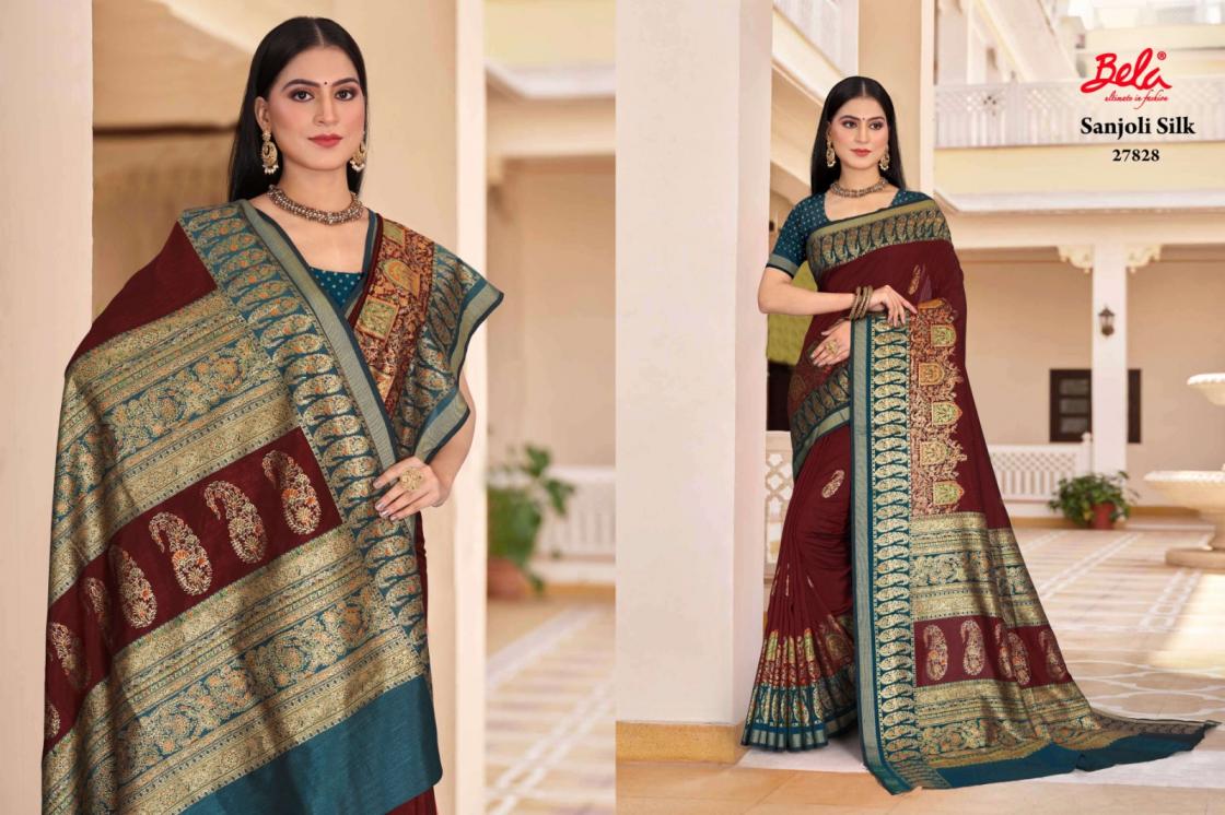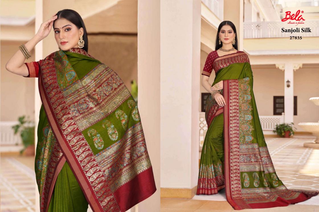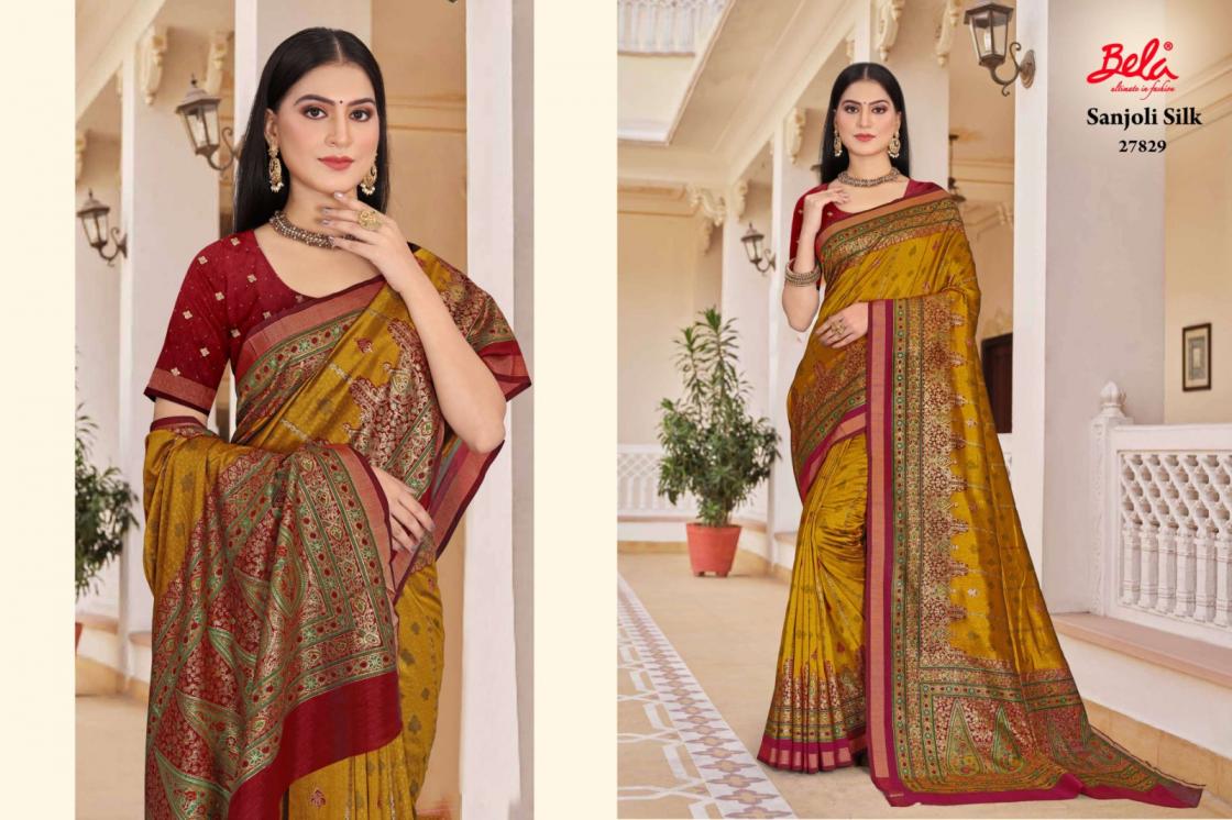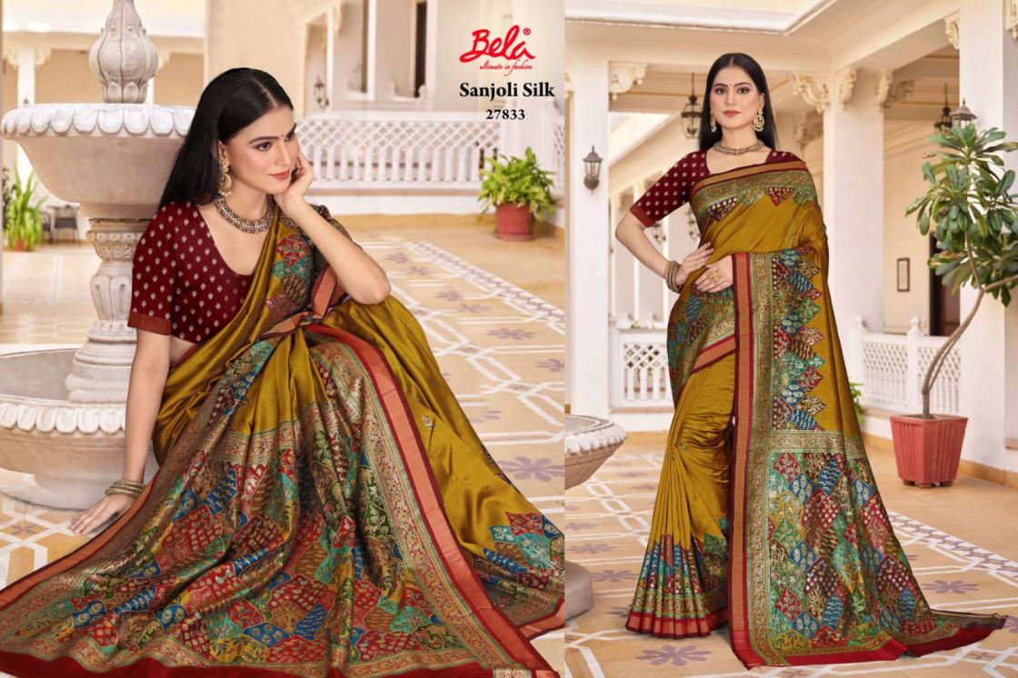 sanjoli silk by bela fashion silk regular wear saree best wholesaler