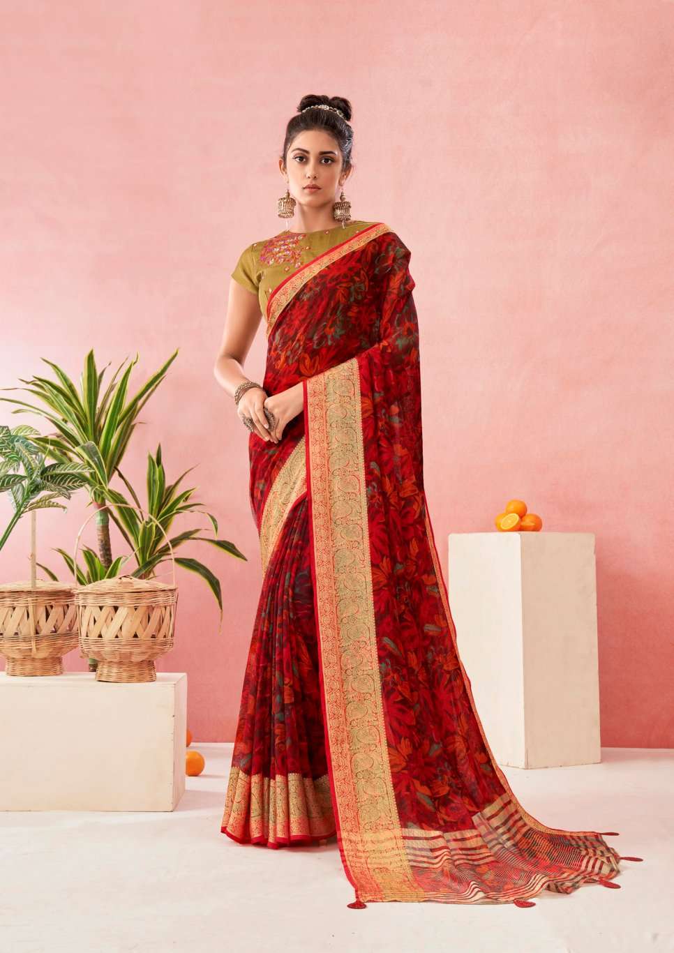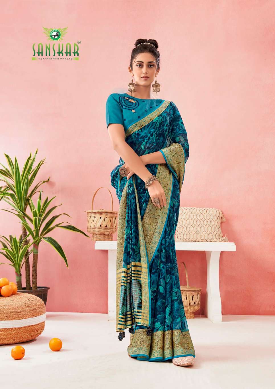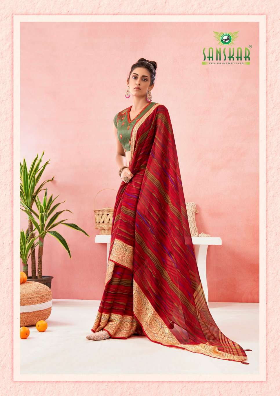 sanskar tex launch spell designs adorable chiffon viscose fancy sarees at wholesale rate