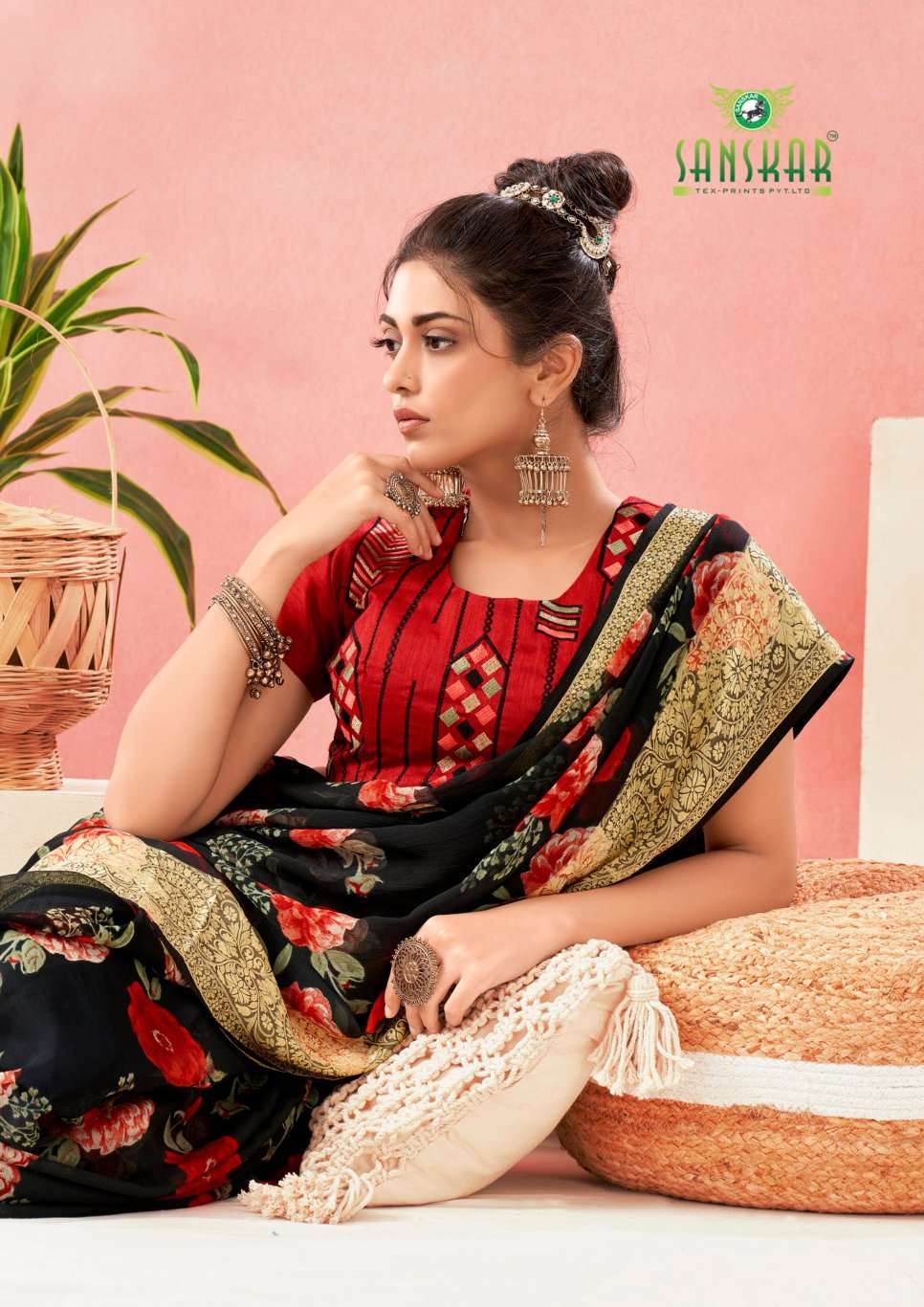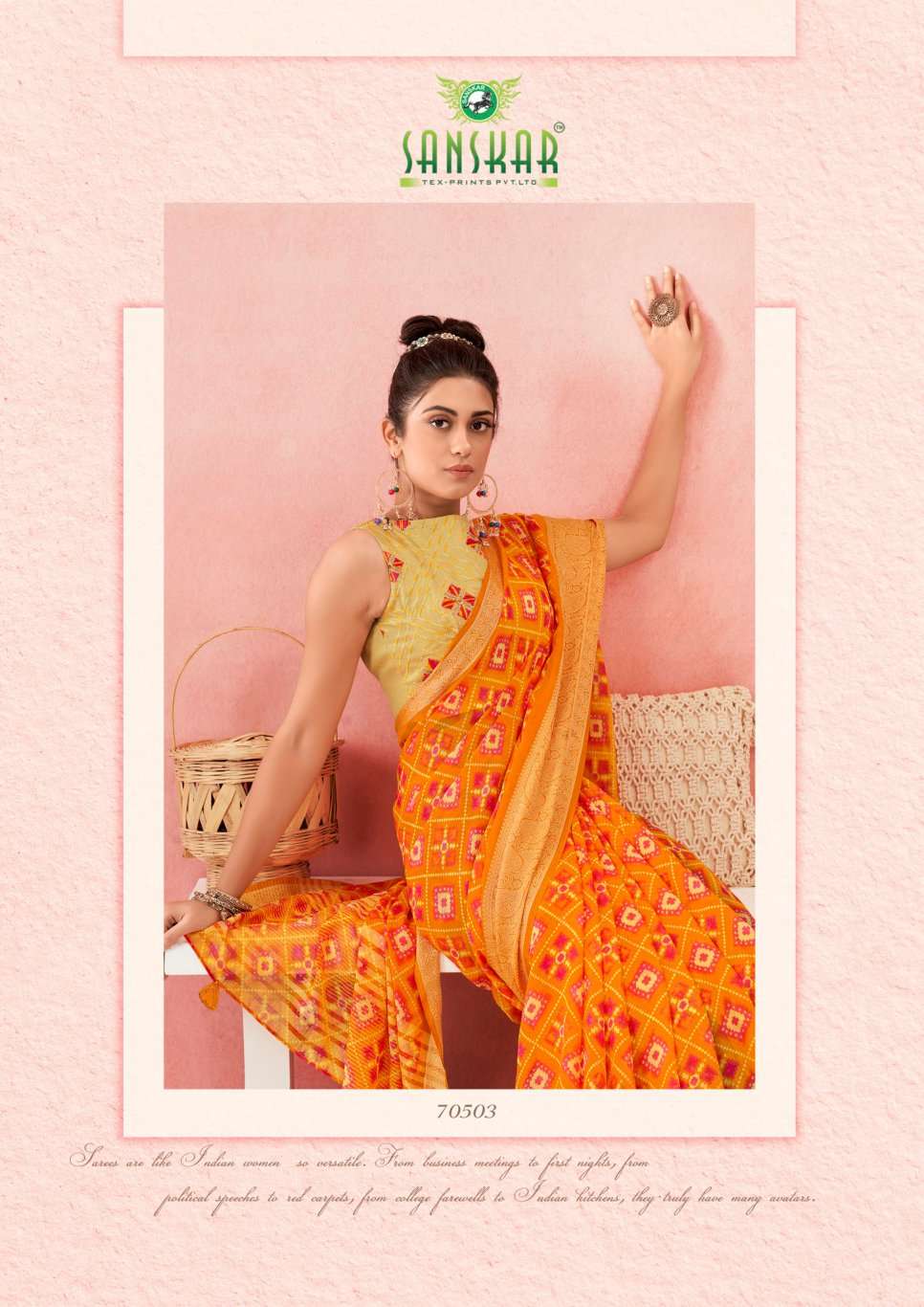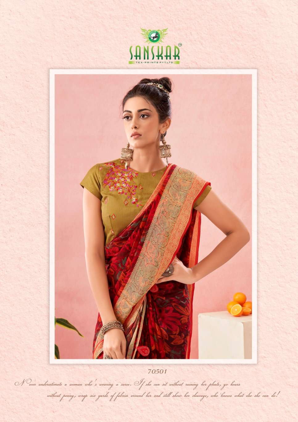 sanskar tex launch spell designs adorable chiffon viscose fancy sarees at wholesale rate