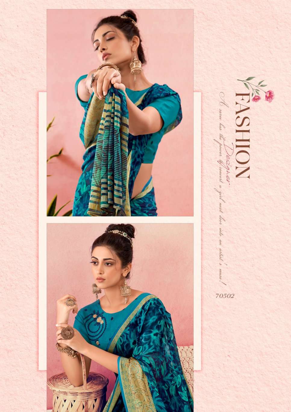 New launching CATLOUGE- Spell Designs Fabric- pure chiffon viscose border pallu with embroidery 🪡 work blouse Qty- 8 dis RATE - ₹851 |