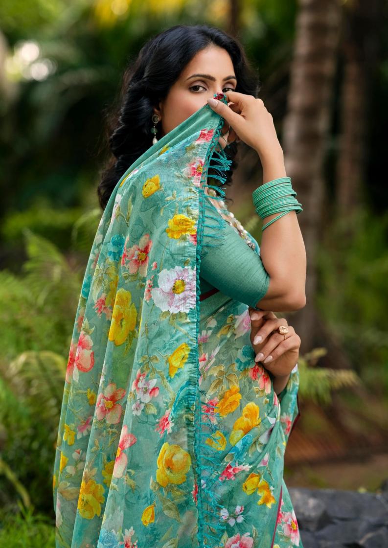 SANSKAR TEX PRINTS PVT LTD CATLOUGE= SOUNDRIYA Fabric- cottan print & jhalar🪡 Qty- 8 Designs RATE - 525₹ |