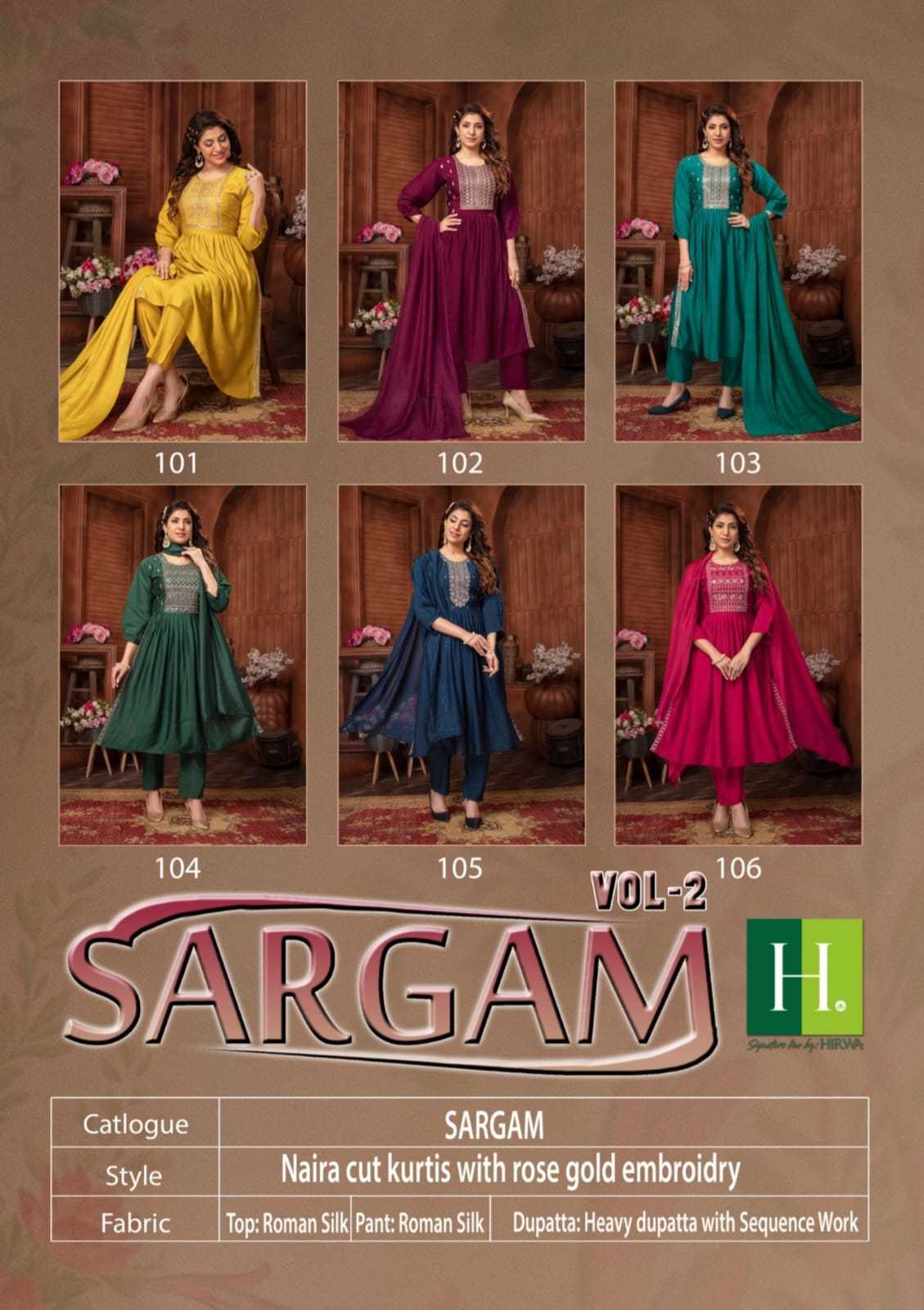 sargam vol 2 by hirwa festive wear fancy nayra cut readymade 3pcs set catalog