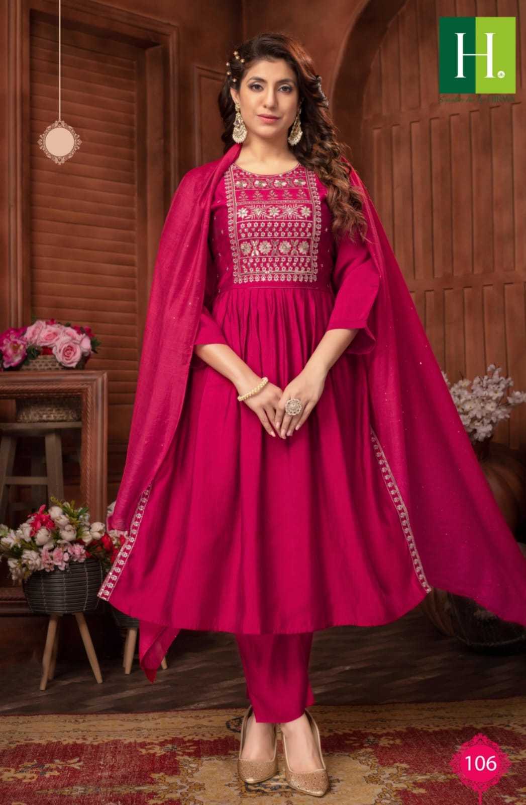 🔥 Roman Silk Naira 3-Piece🔥 H.DOT by HIRWA presents its latest Naira cut 3-Piece catalog 📒NAME: SARGAM (Vol.2) 👗 FABRIC: 👇 Pant - Roman Silk Dupatta - Sequence Work Dupatta ✨ CONCEPT: 3-Piece (Top + Pant + Dupatta) Naira Cut Festive wear Kurtis with Heavy Embroidery Work ✨ LENGTH: 45"+ ✨ DESIGNS: 6 ✨ SIZES: M, L, XL, XXL & 3XL Rate: 850/- per pcs |
