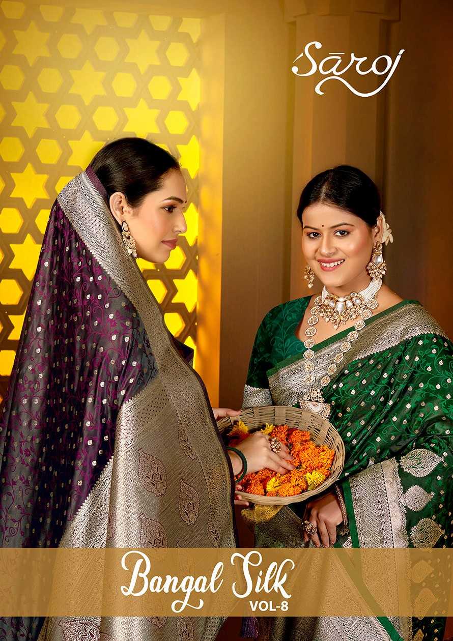 Saroj Saree Bengal Silk vol.8 Satin Silk Heavy Fabric NEW DESIGN CONCEPT Rate- ₹1245/- |