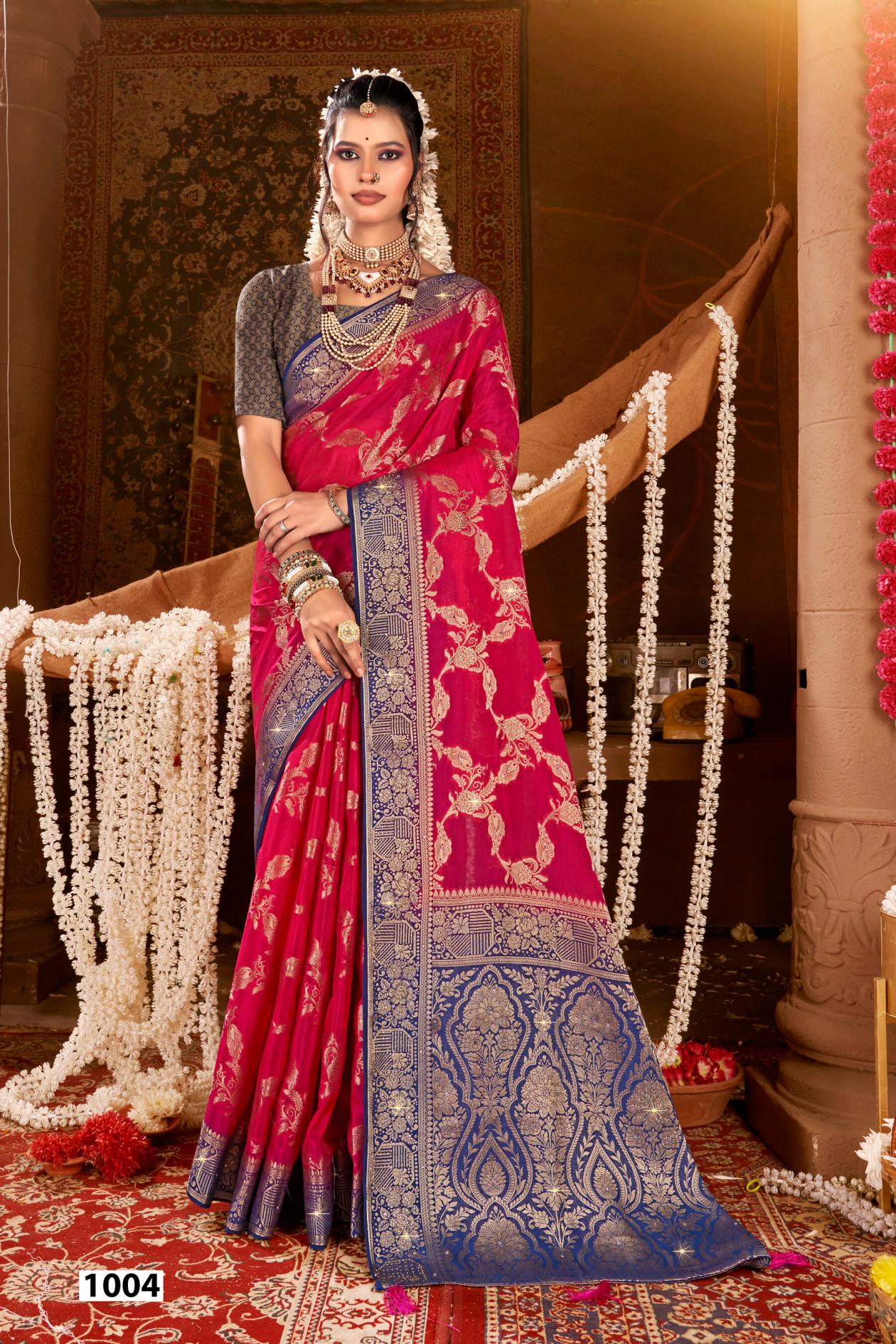 Bhumi saroski vol.3 Chinon Silk with saroski work and contrast pallu Rate-₹810/- |
