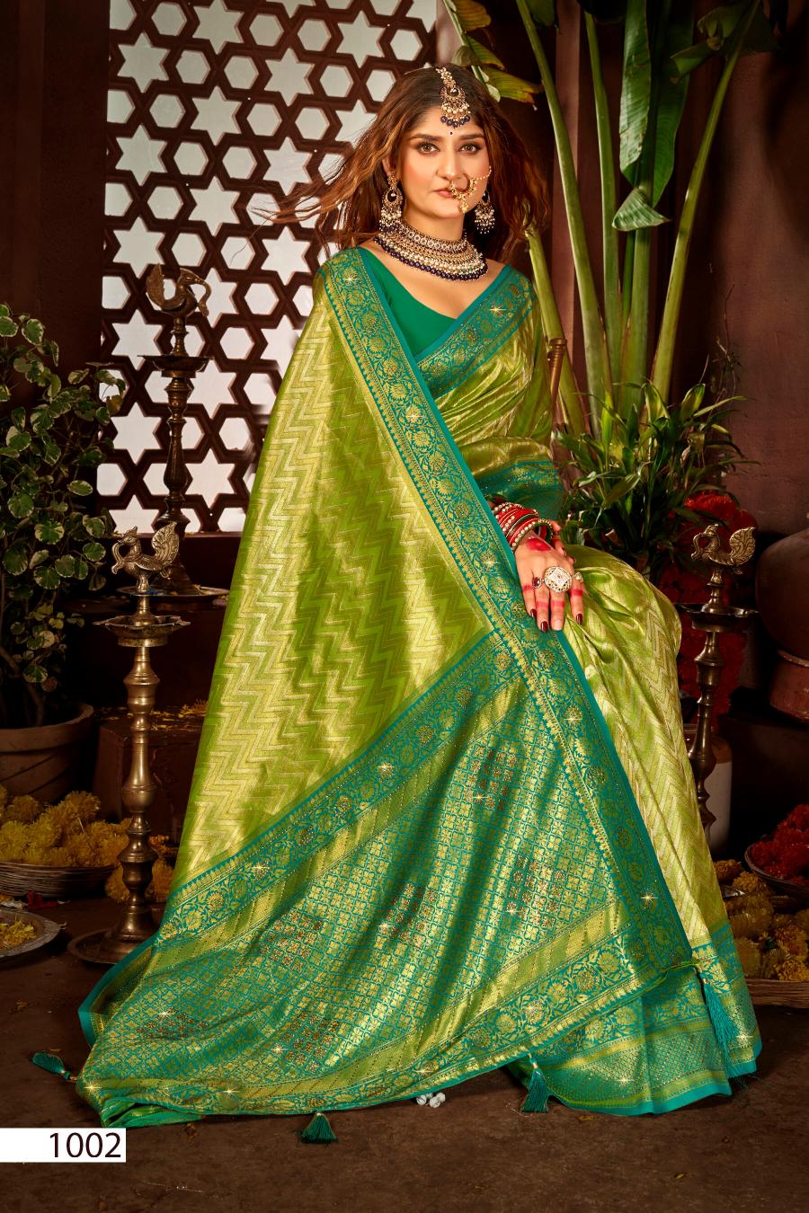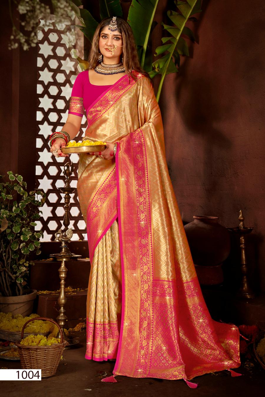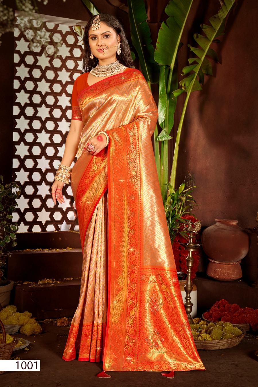 Kanha Silk Saroski vol.1 Soft Kanjivaram Silk Rich Pallu Swarovski Work Saree Rate-1130/- |