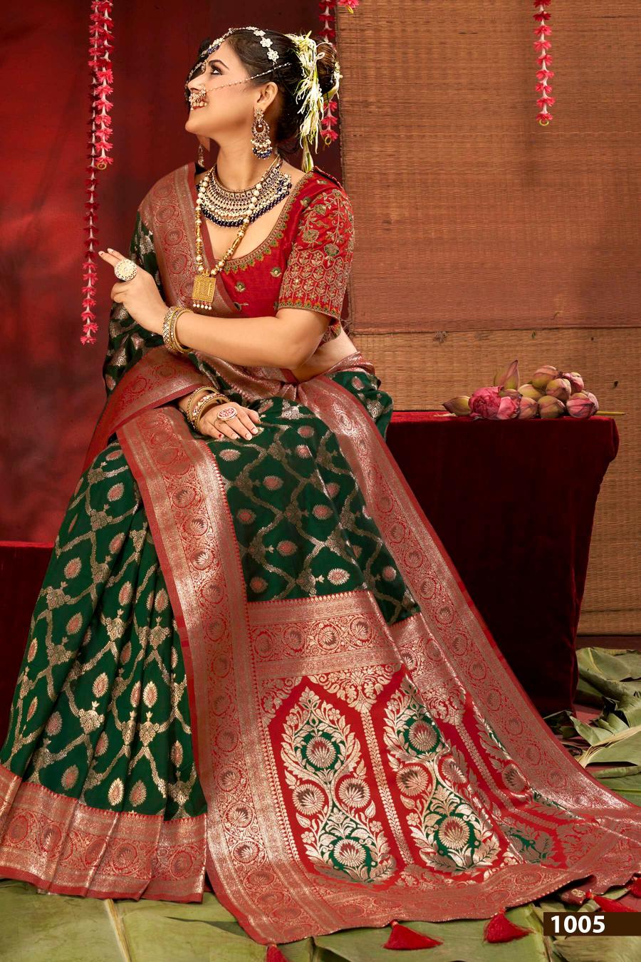 Mangalgiri Silk vol.4 Pure 50*600 Silk With Heavy Banarasi Jari Rich Pallu Saree & Heavy Blouse Work Concept Rate-₹1390/- |