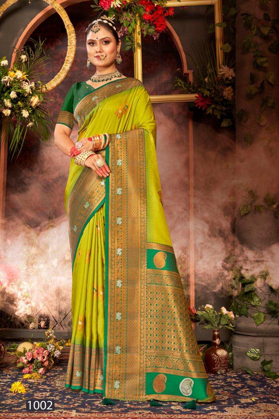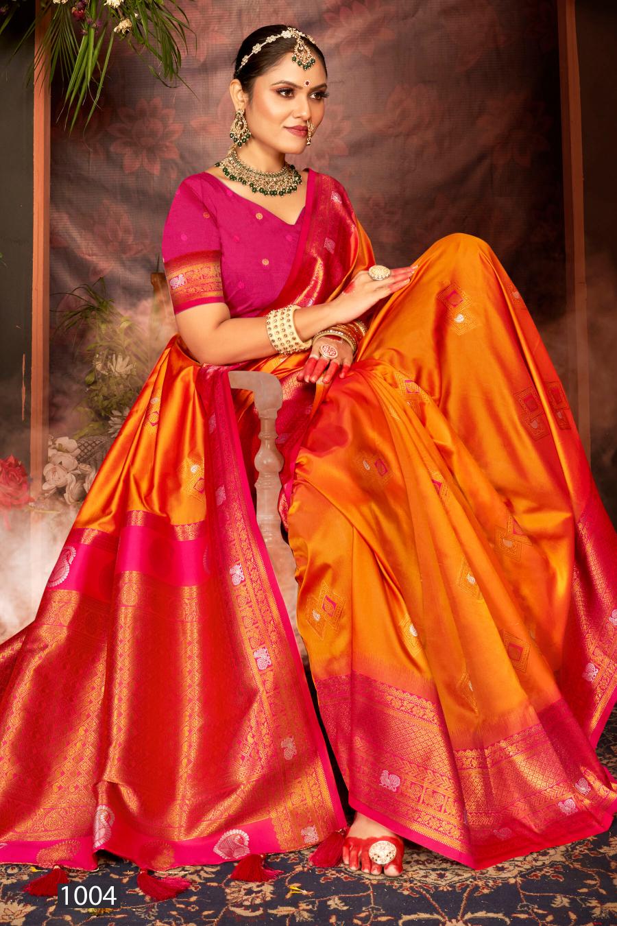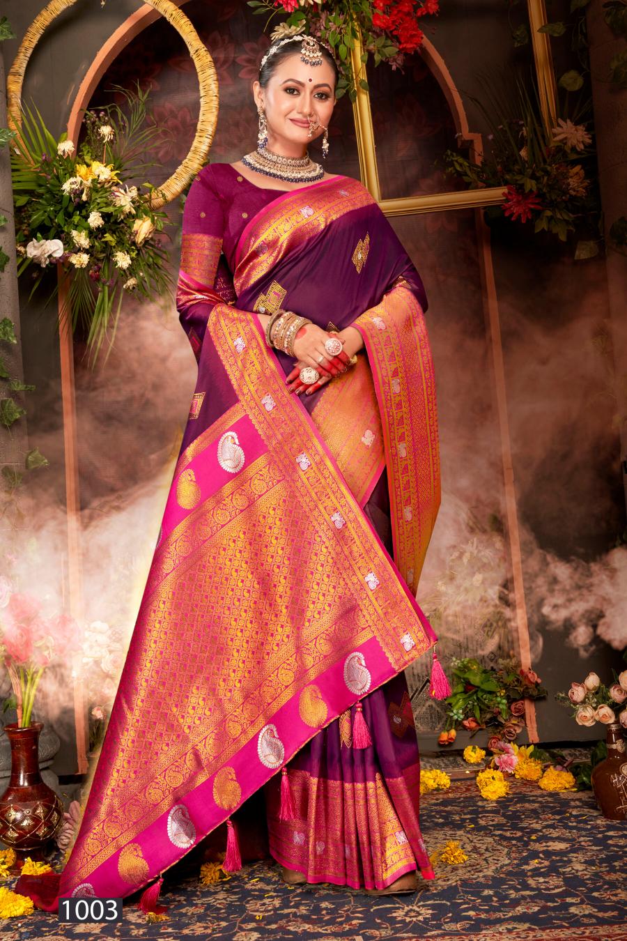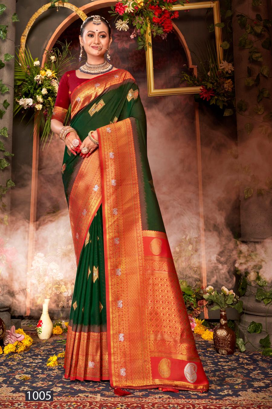 Masoom Silk vol.4 Pure 50*600 Silk With Heavy Copper & Silver Double Jari Rich Pallu Saree Rate-₹1000/- |