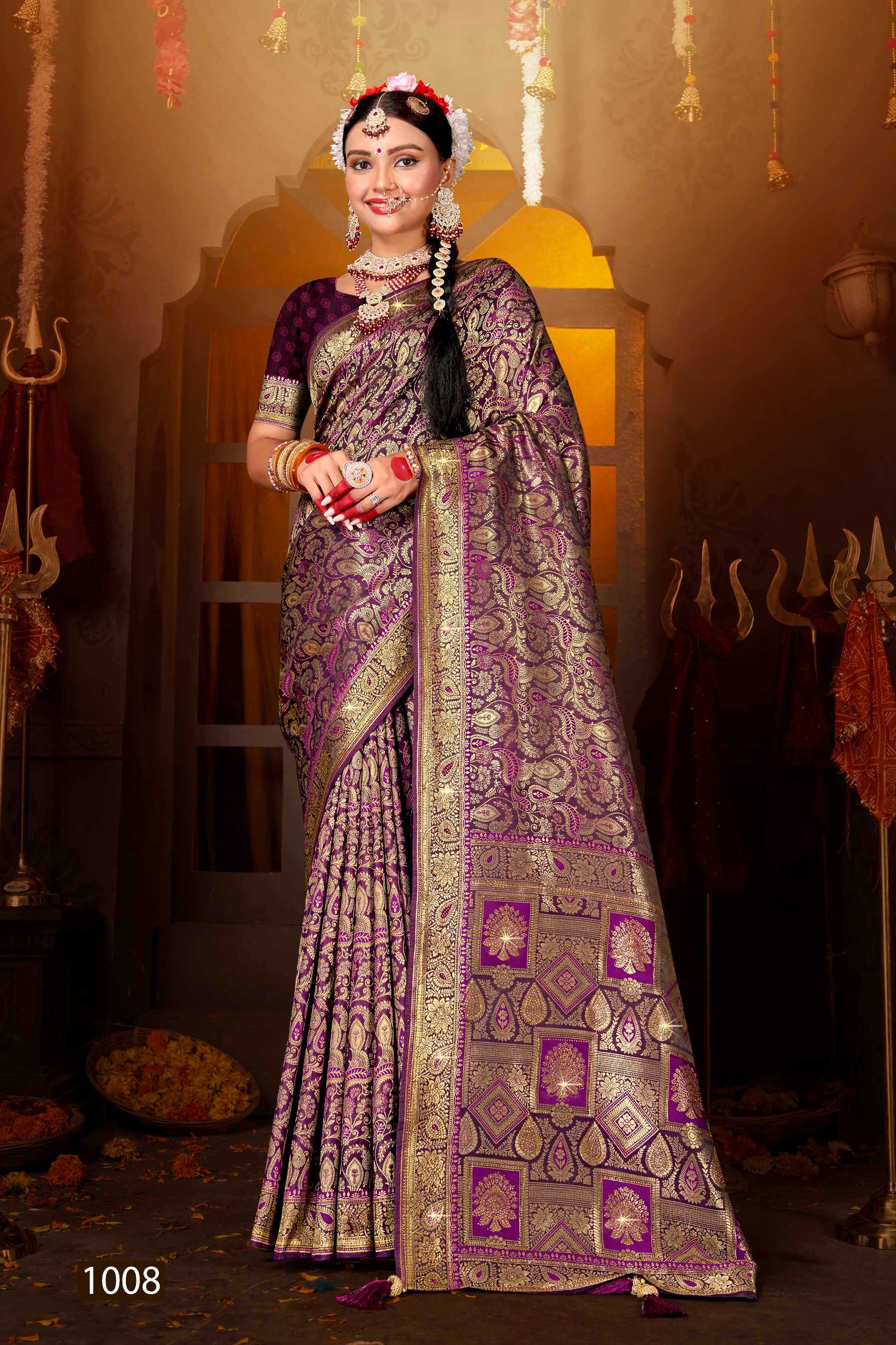 Saroj Saree Minakari Swarovski vol.1 Satin silk rich pallu with swaroski design Rate- ₹1410/- |