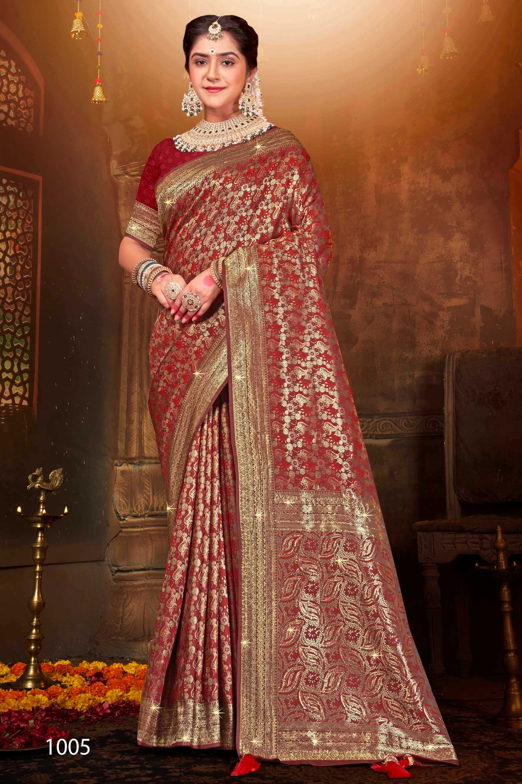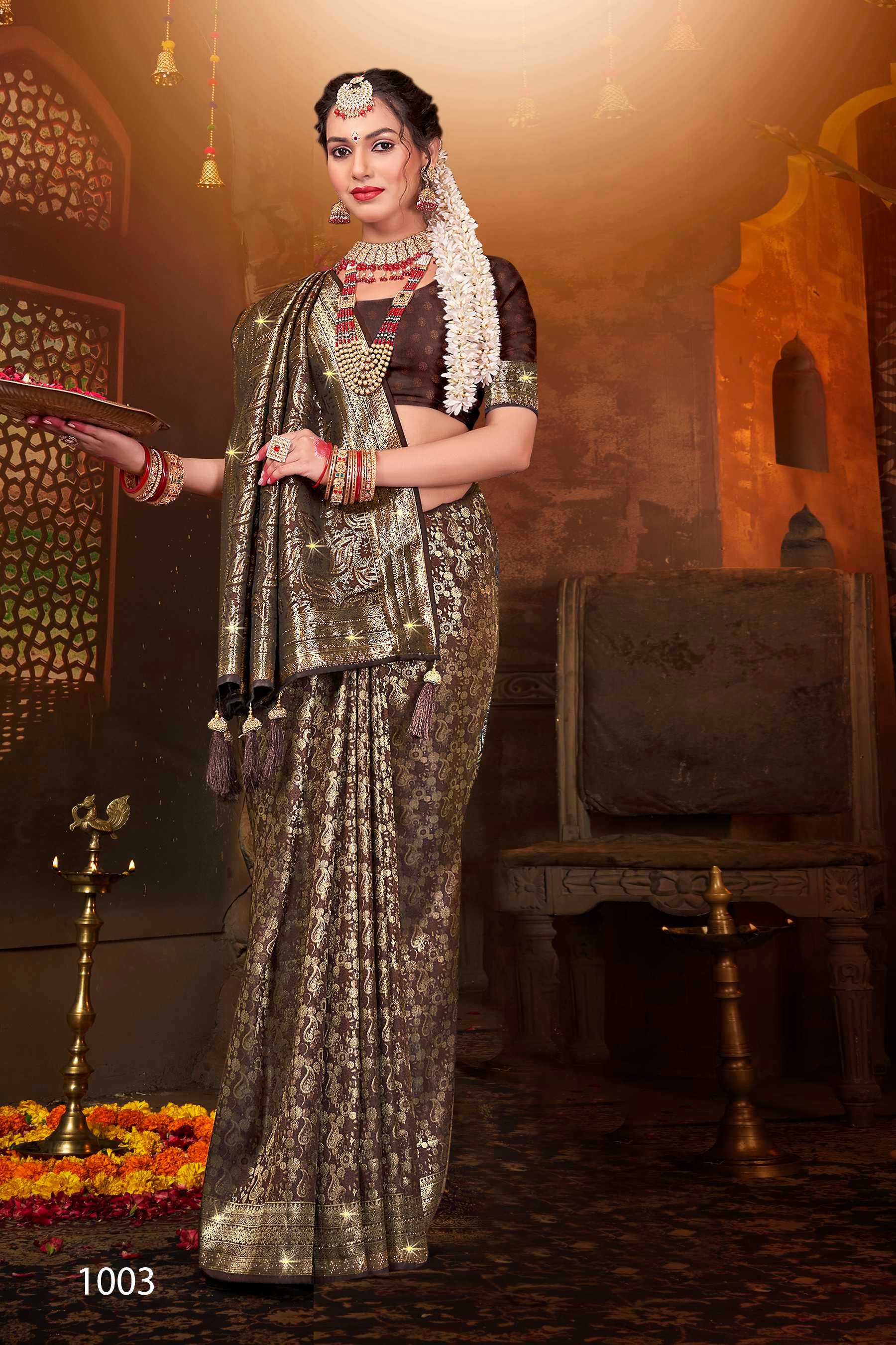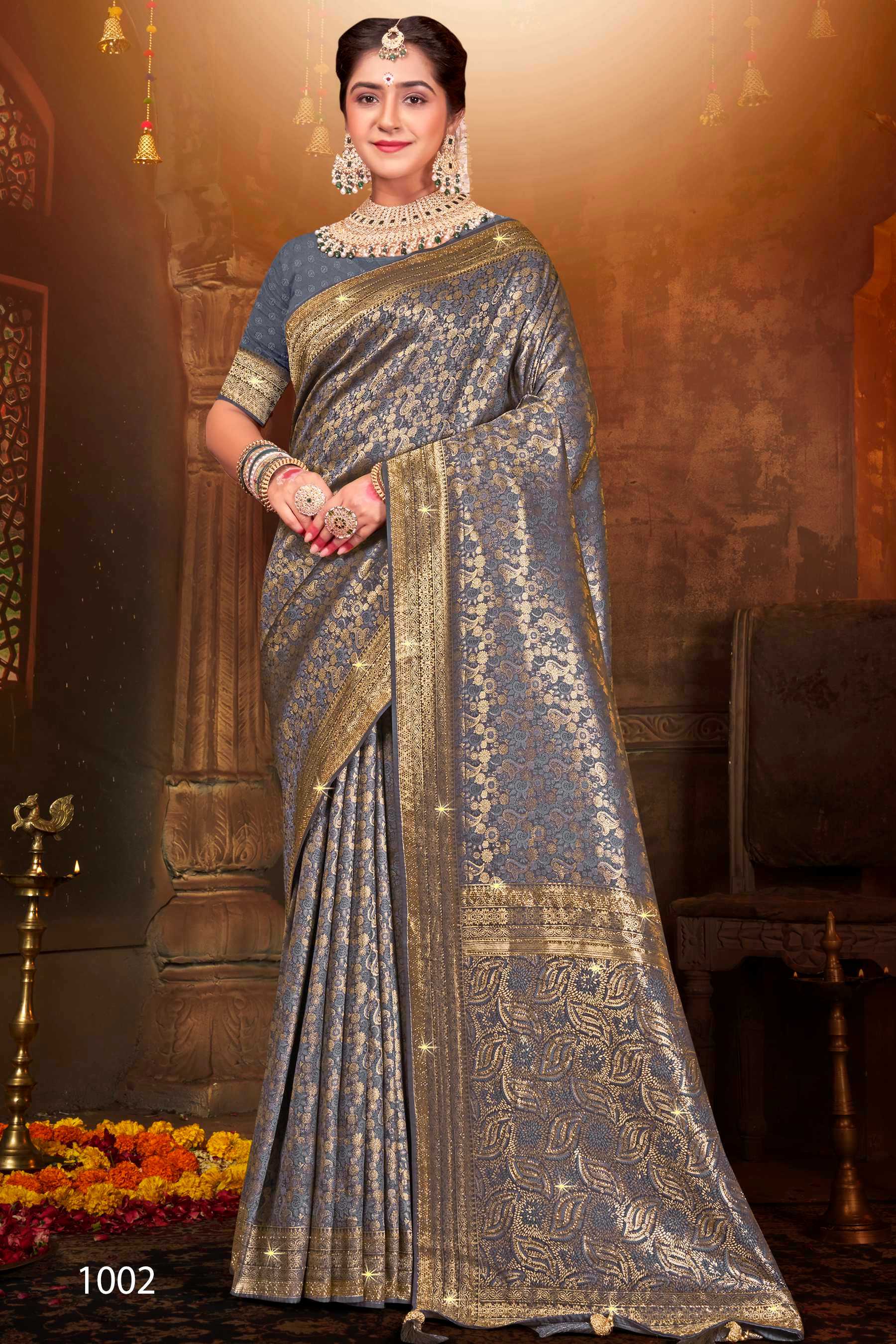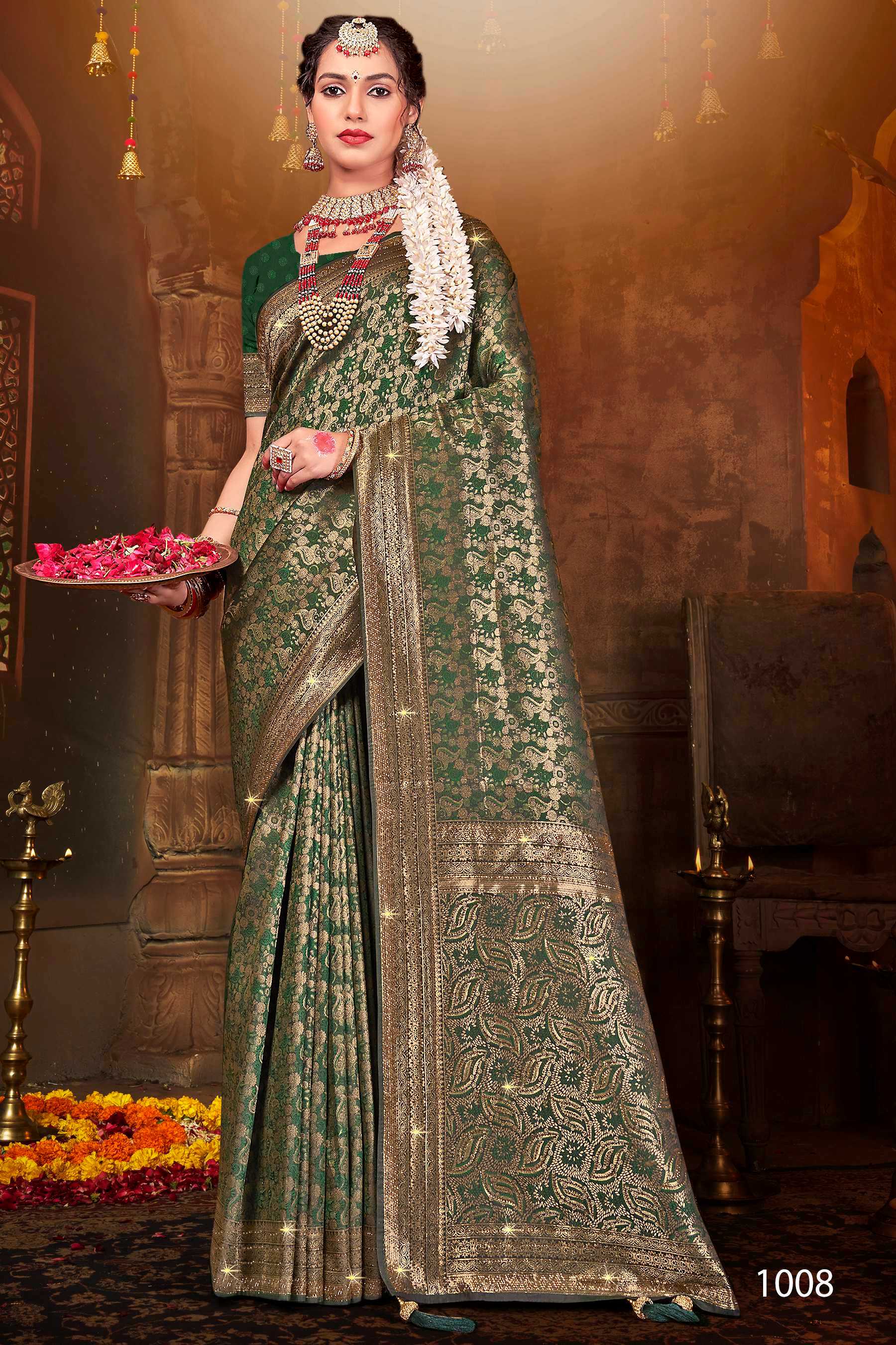 Saroj Saree Minakari Swarovski vol.2 Satin silk rich pallu with swaroski design Rate- ₹1410/- |