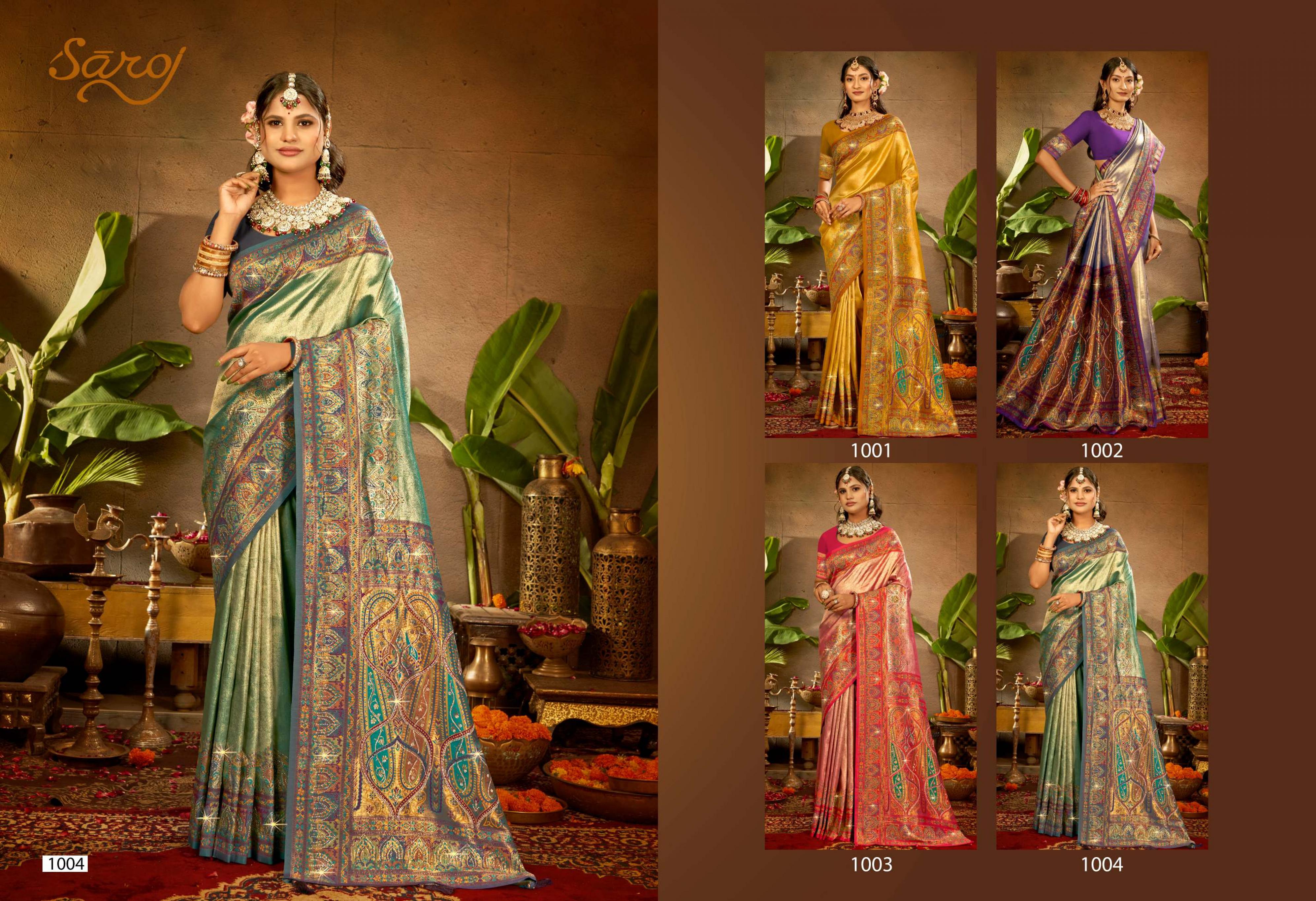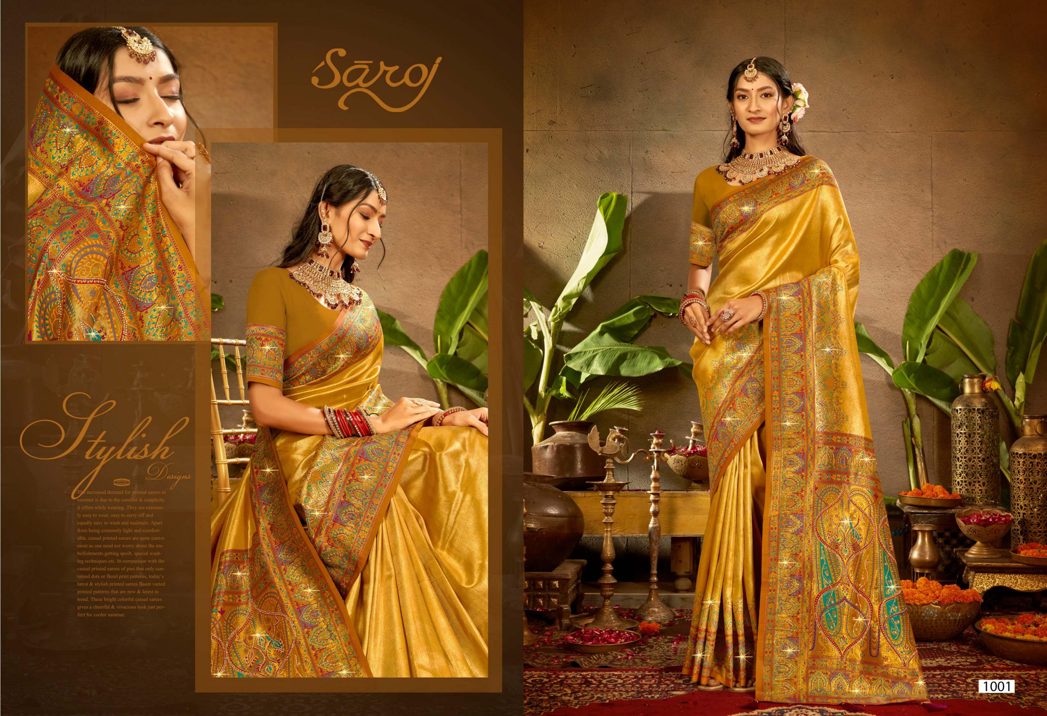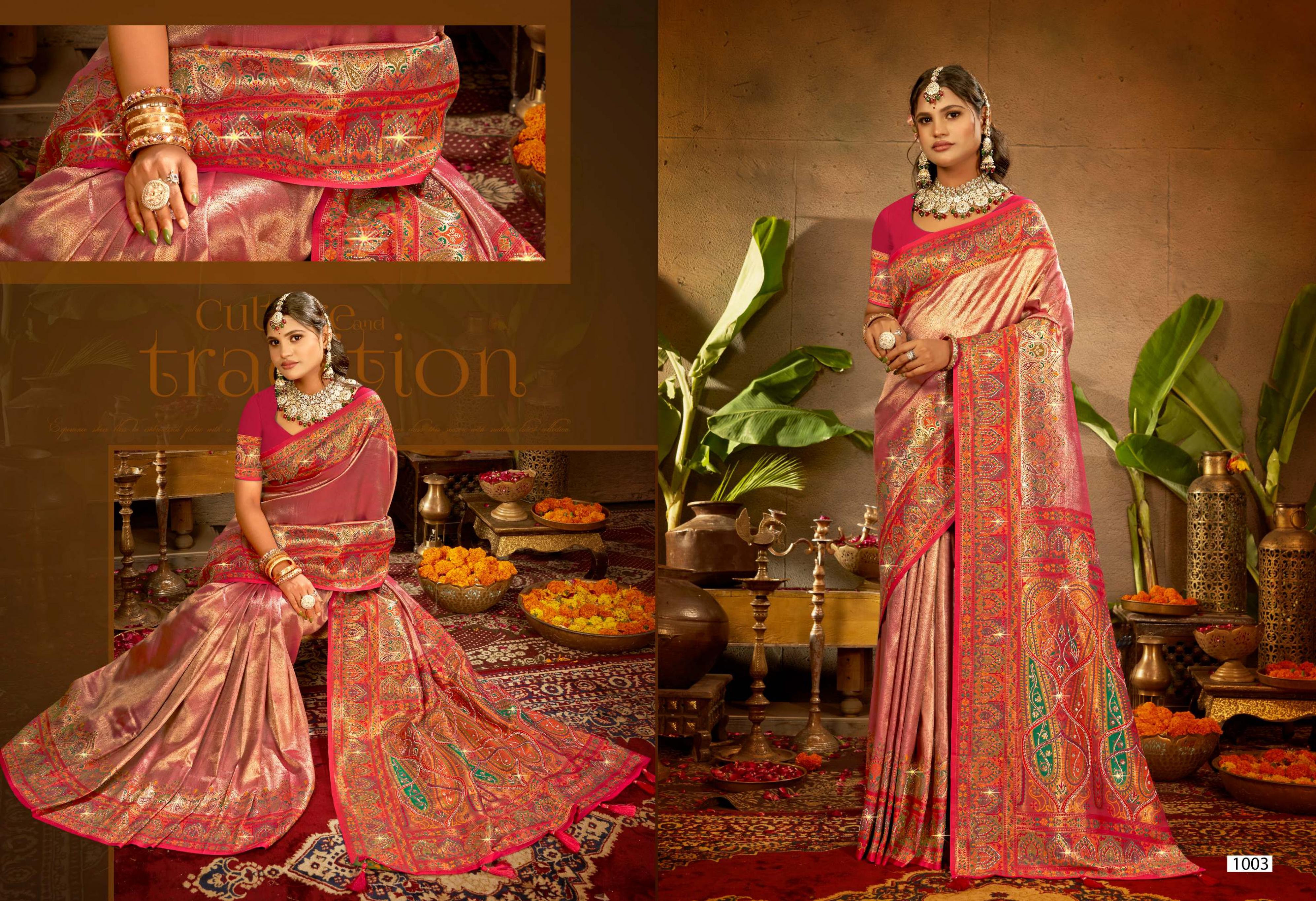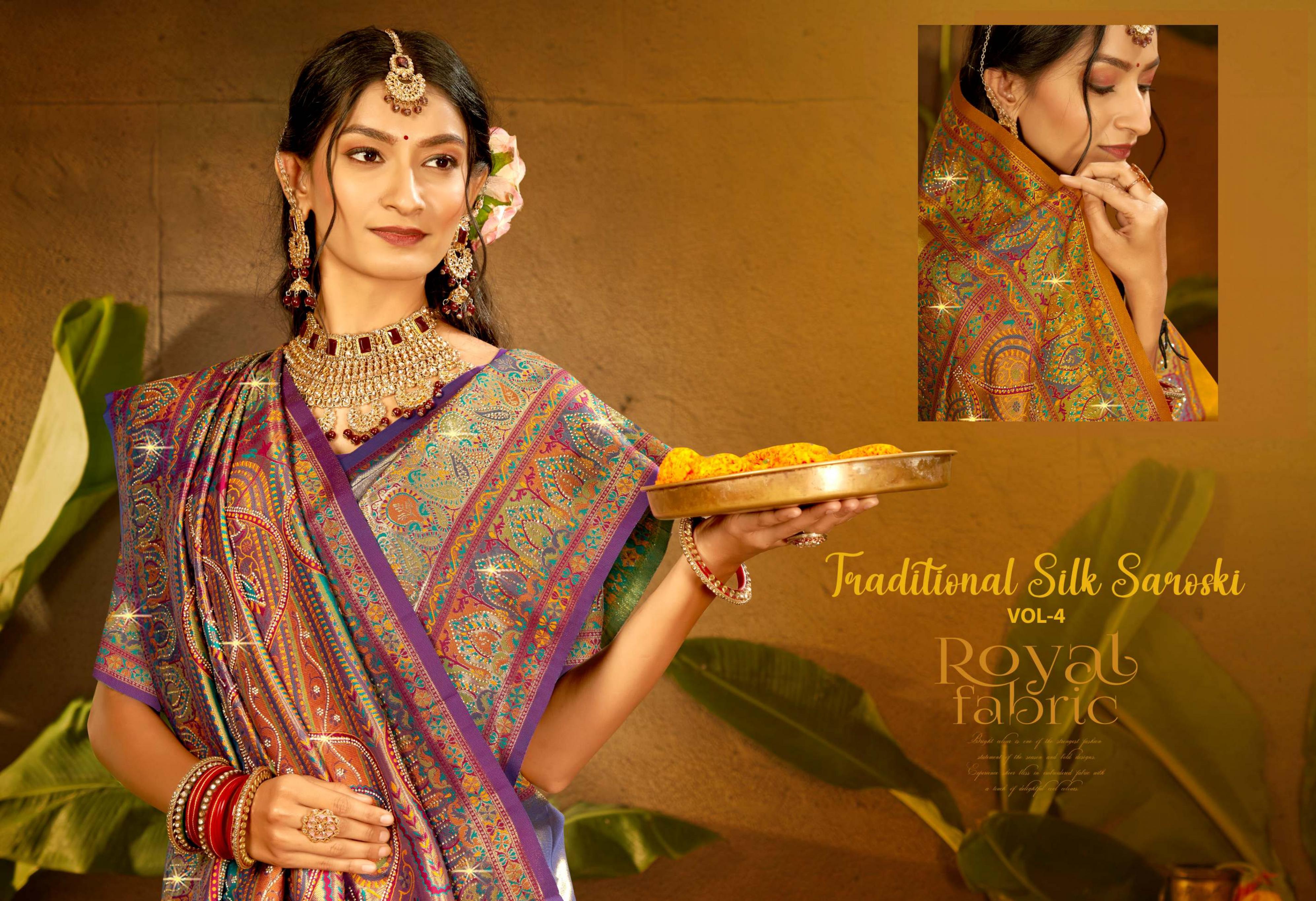 Traditional Silk Saroski vol.4 Pure Tissue Silk Rich Pallu Saree Bright Matching Jharkan Work Position Print Designing Rate:₹2085 |