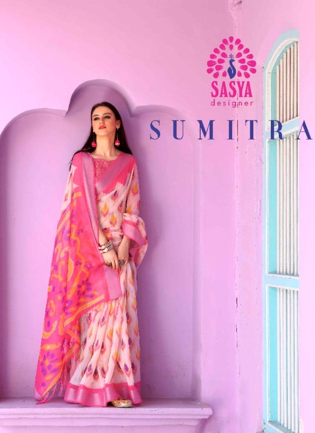 SASYA DESIGNER Sumitra Catalogue Sowft Cotton Fabric Weaving Silver Zari Border 499/- Rate 10-pcs catalogue |