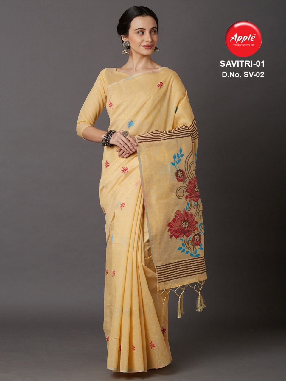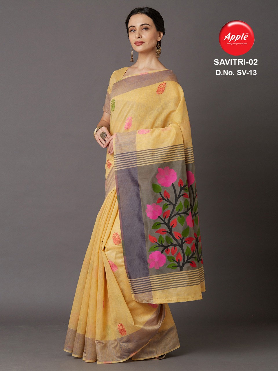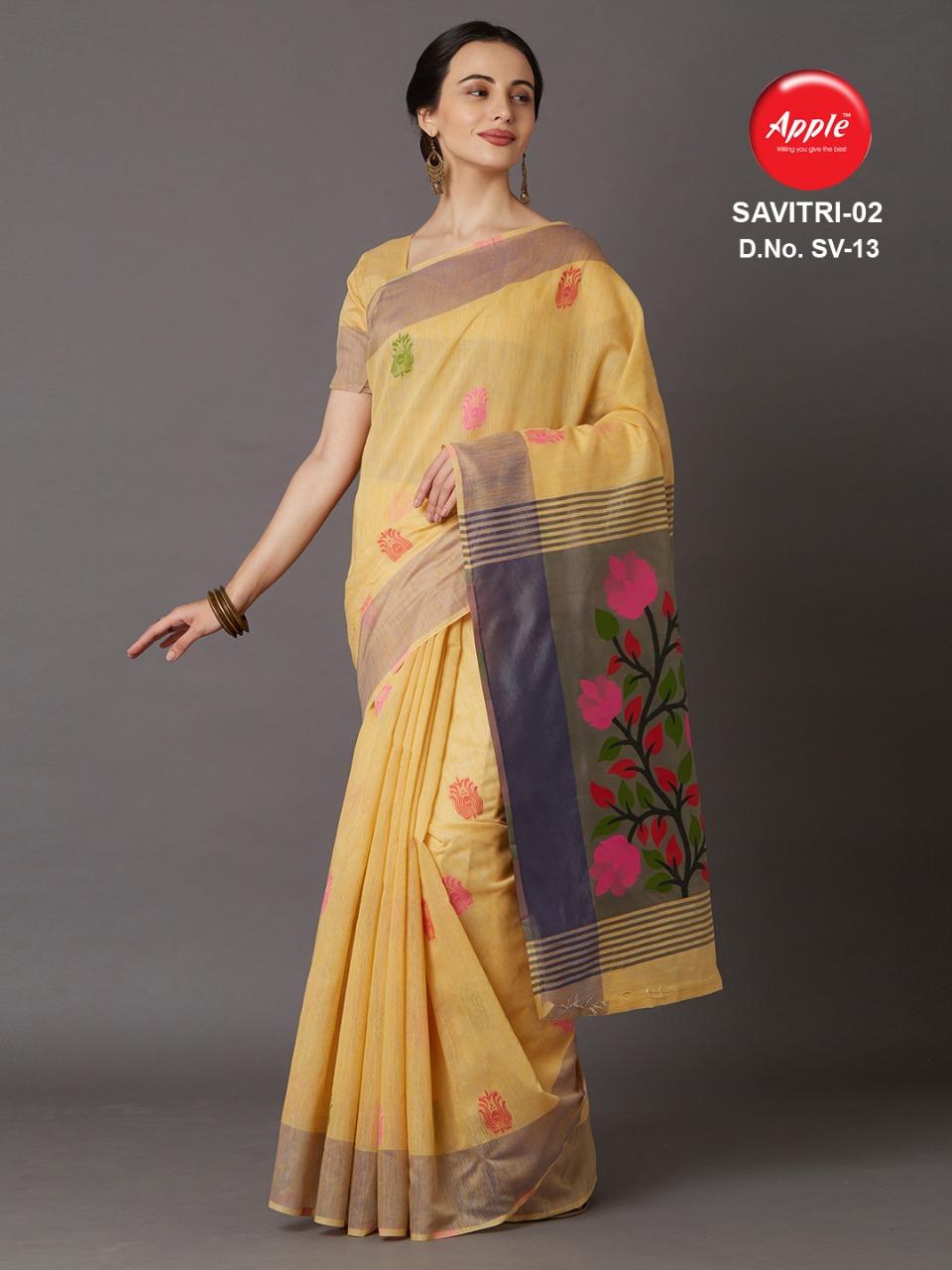 Savitri Vol 1 And 2 By Apple Cotton Silk Resham Weaving Casual Wear Exclusive Saree