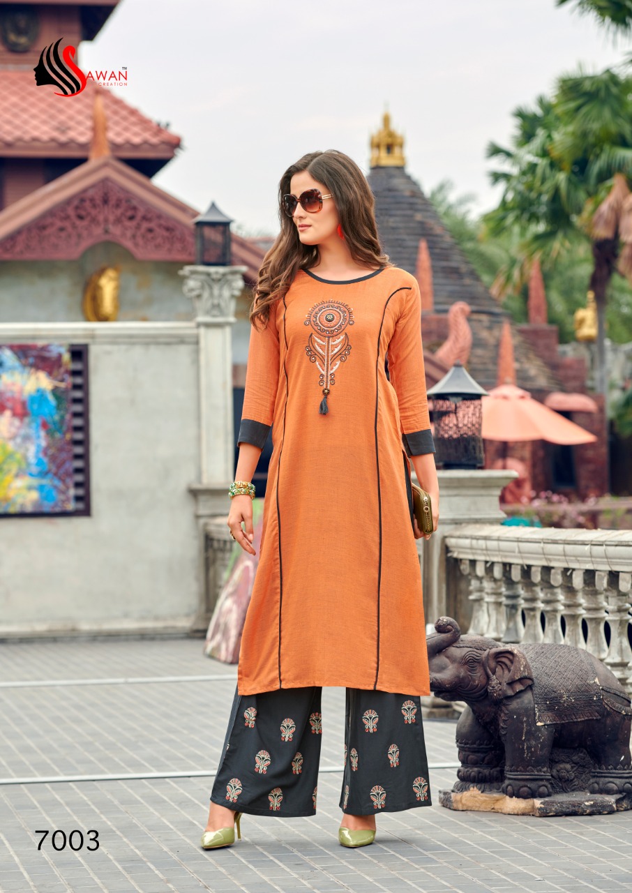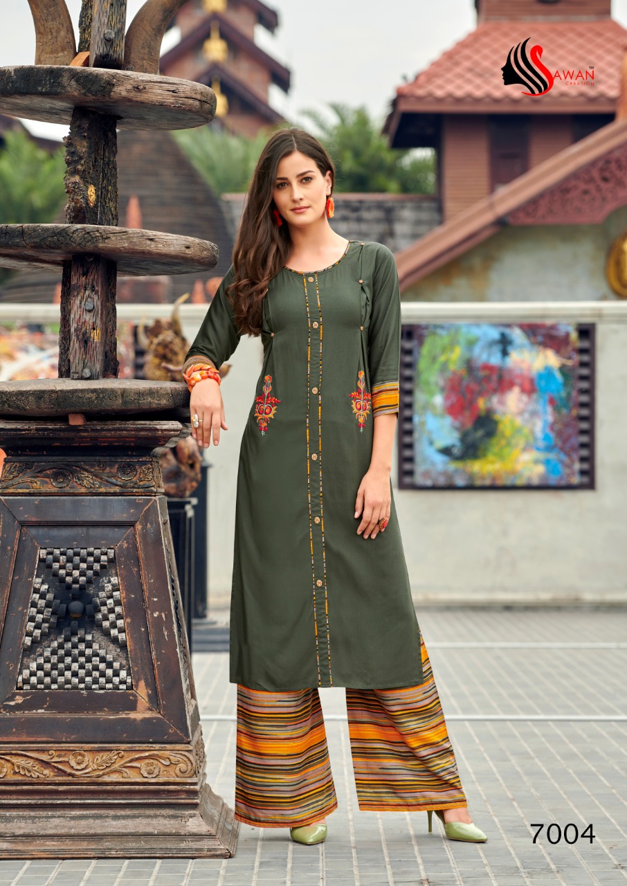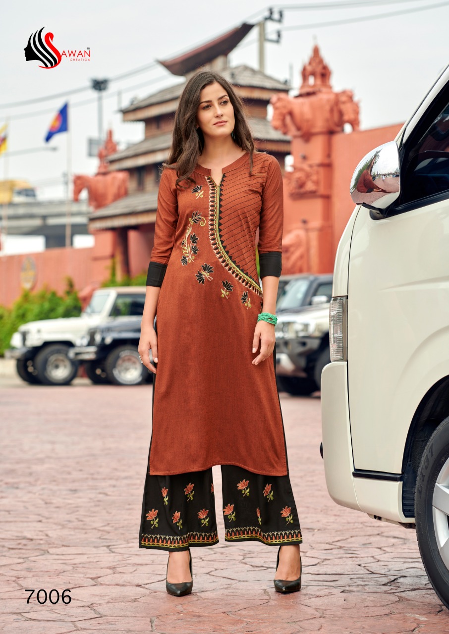 Sawan Dani Vol 7 Rayon Embroidery Long Kurti With Palazzo Online Supplier