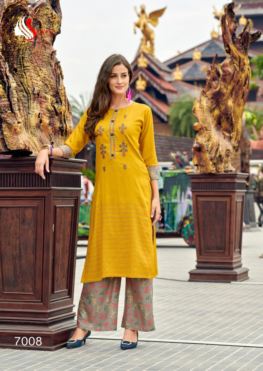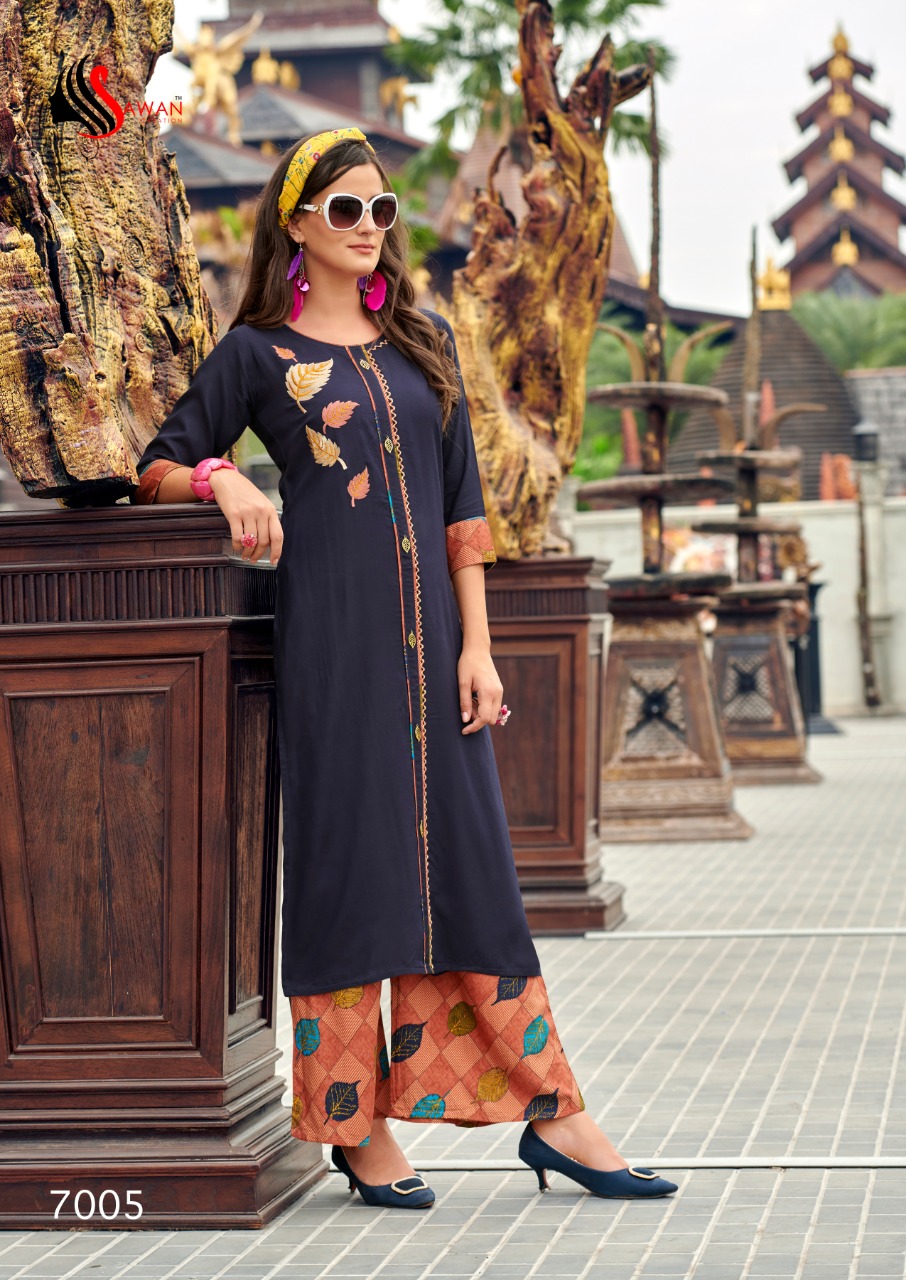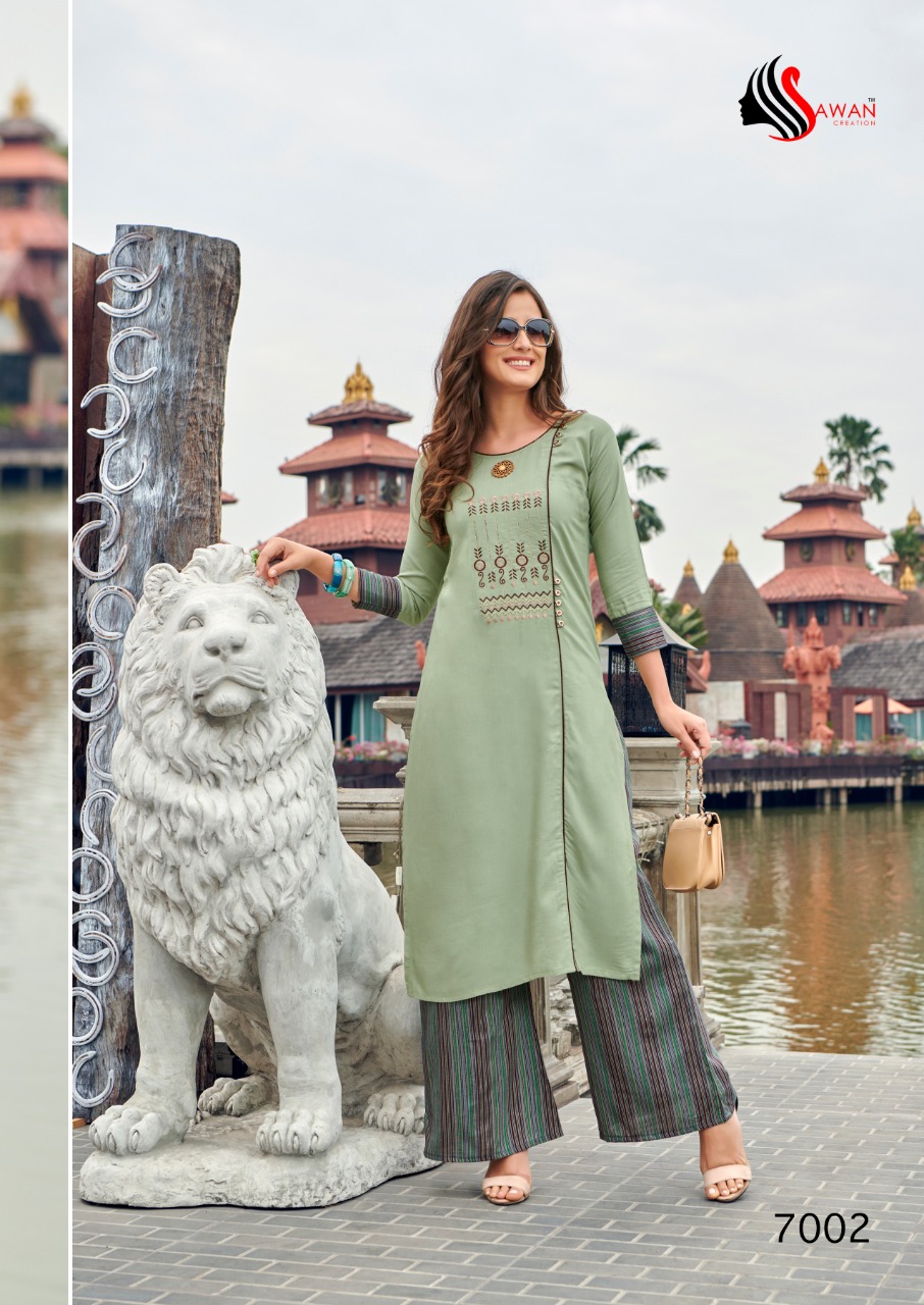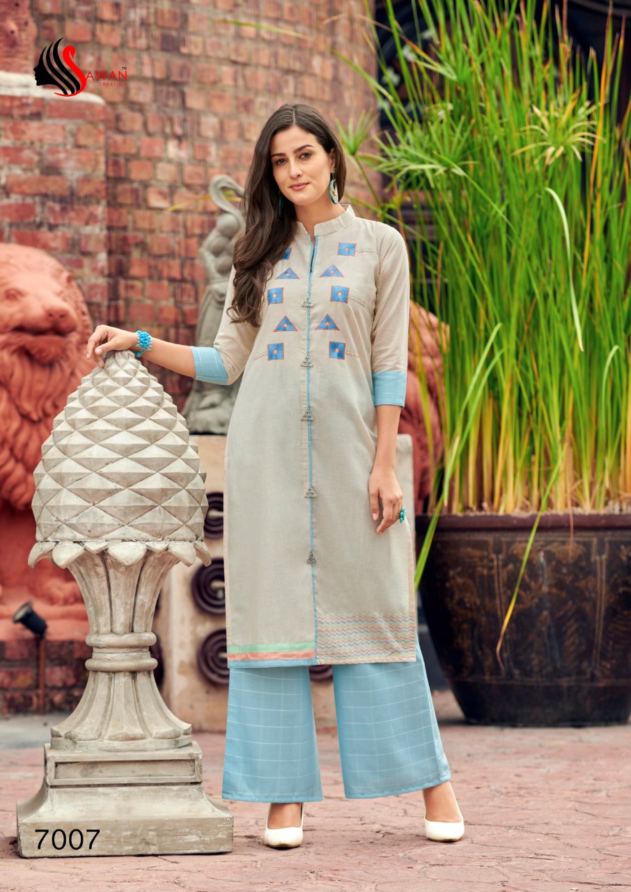 Sawan Dani Vol 7 Rayon Embroidery Long Kurti With Palazzo Online Supplier
