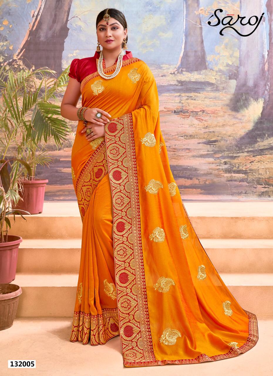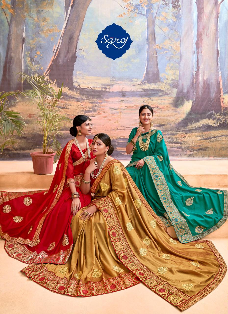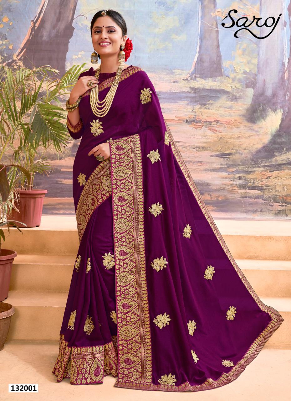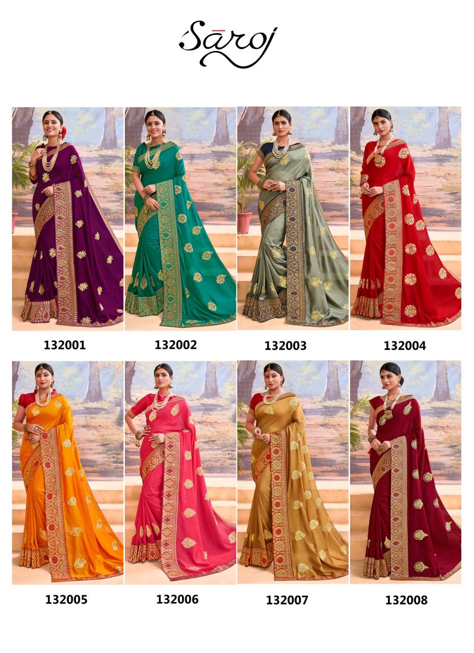 *Sayarana by Saroj * Rate - 1125 per Pcs Fabric: PxC Vichitra silk with embroidery work. Blouse: Vichitra Silk. 8 Designs in set. Set to set GST 5 Percent Extra. Delivery 3-4 days |
