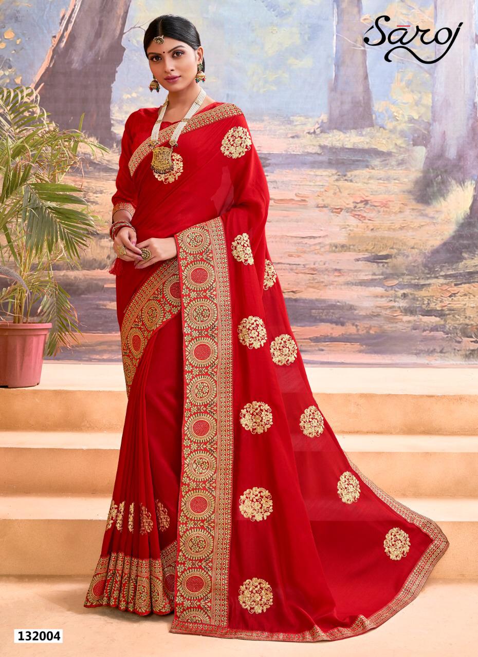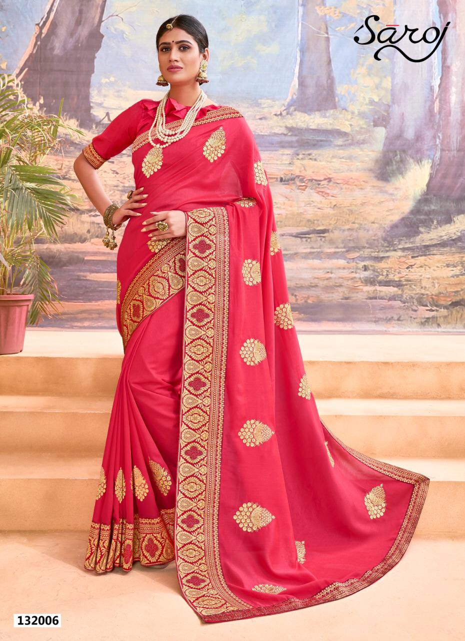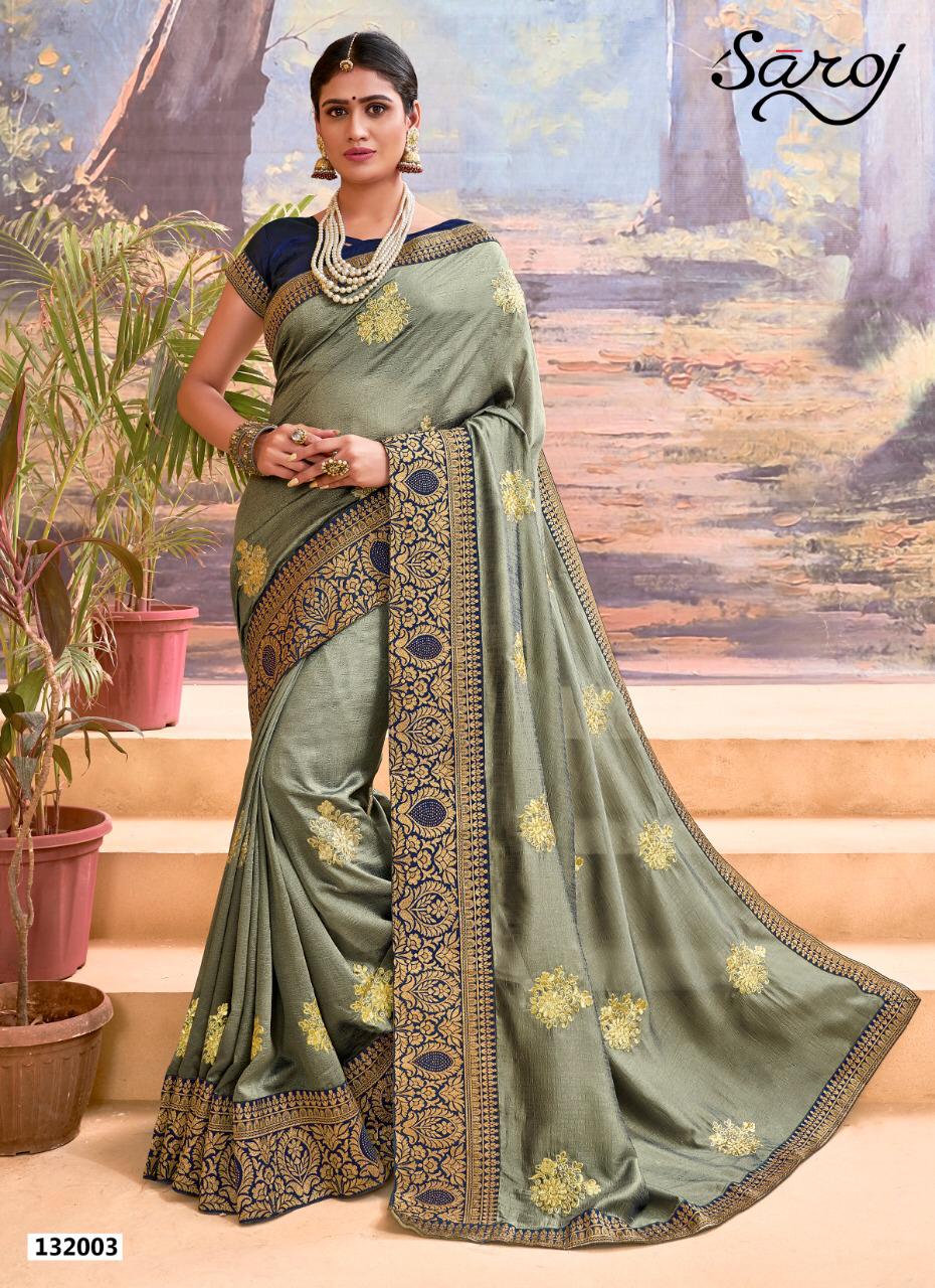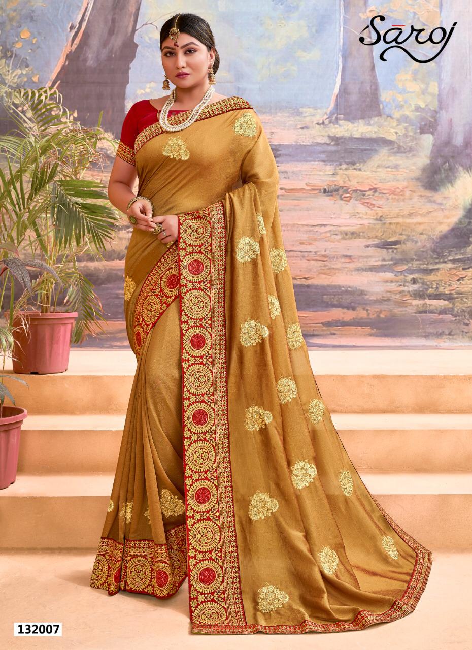 *Sayarana by Saroj * Rate - 1125 per Pcs Fabric: PxC Vichitra silk with embroidery work. Blouse: Vichitra Silk. 8 Designs in set. Set to set GST 5 Percent Extra. Delivery 3-4 days |