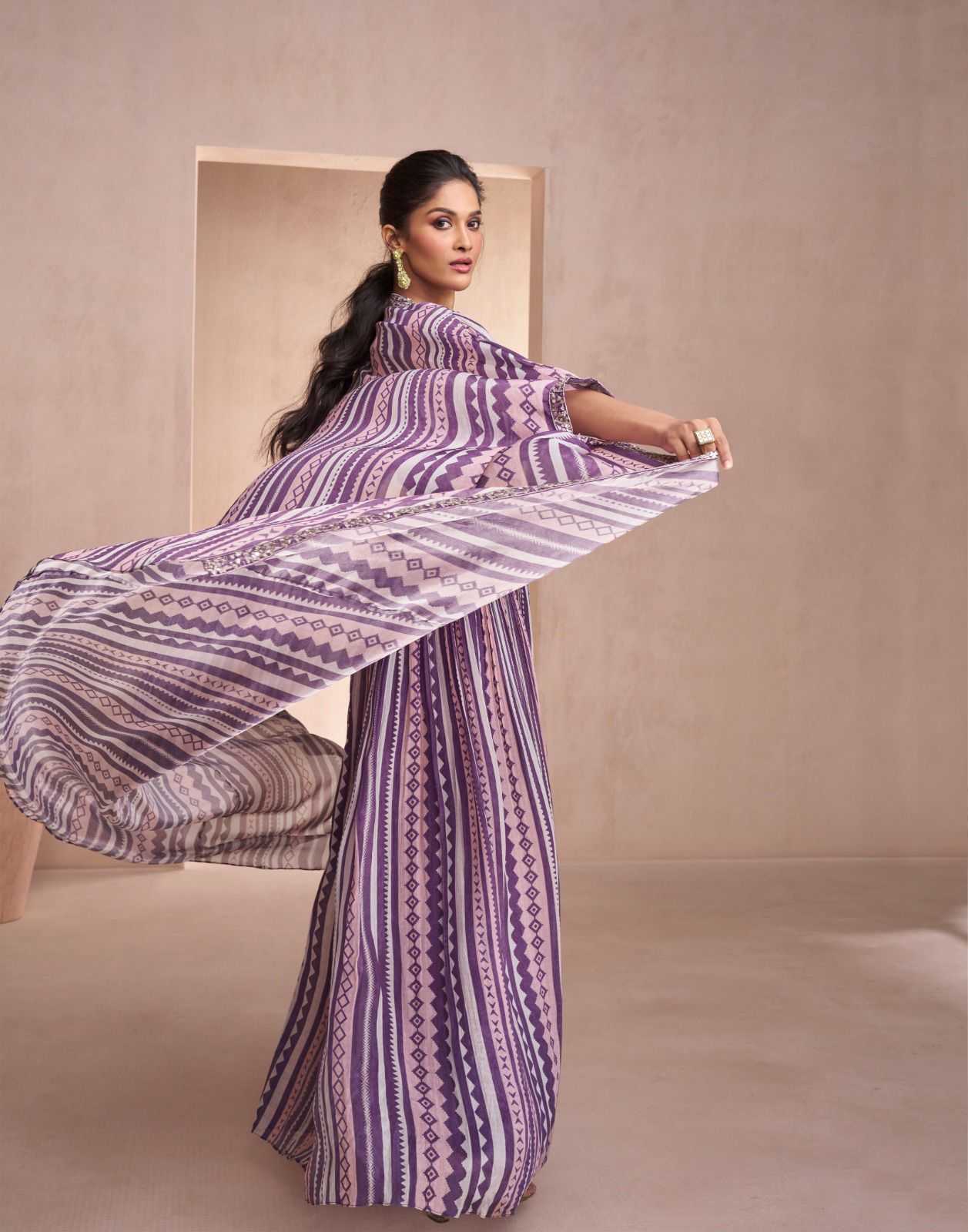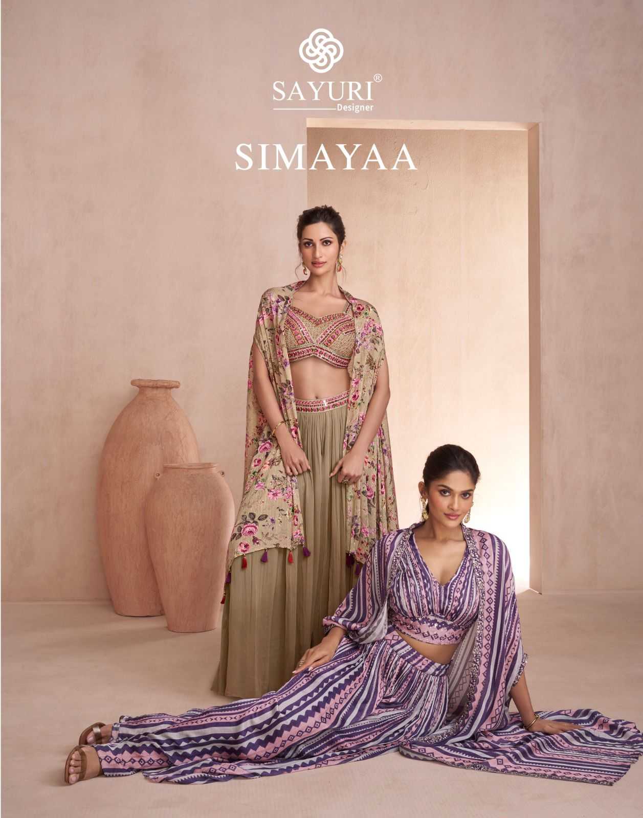 sayuri designer simayaa exclusive design chinon silk full stitch indowestern dress