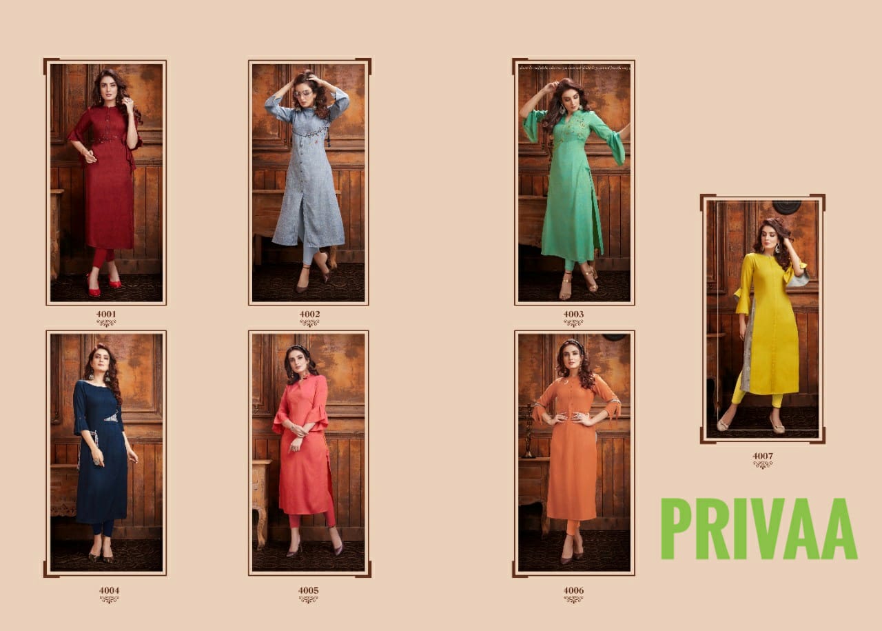 Seher Vol 4 By Privaa Rayon Formal Wear Kurti Collection