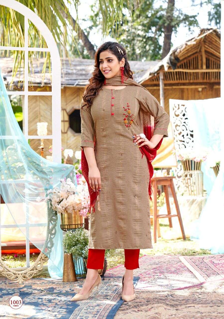 ## SELESTA ## LAUNCHING NE CATALOGUE (top dupatta concept) Hello Sir/Madam For This Season Exclusive Designers Kurties CHUNARI Catalogue Is Coming Soon... 6 KURTIES Beautiful Catalogue Having Designes Conccept... EXCLUSIVE LOOK 👗 FABRICS 👗 TOP :- PURE COTTON CRUSH (WITH HAND WORK) 🎗Size - M (38) Top Lenght - 46" IN HER STYLES ETERNAL SENSES AND SENSIBILITY 💰Rate - 655/- ➕ 5 % GST 💐Thanks For ur Kind Support.💐 |