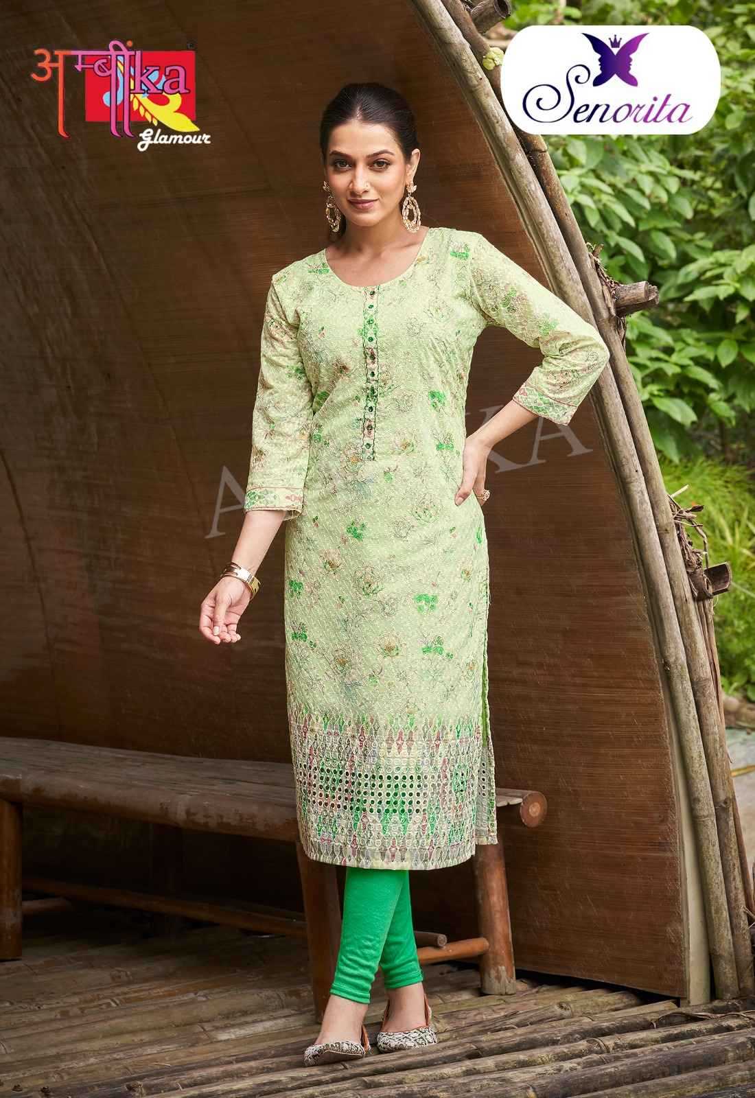 senorita ambika kurtis straight cut combo set readymade cotton kurti