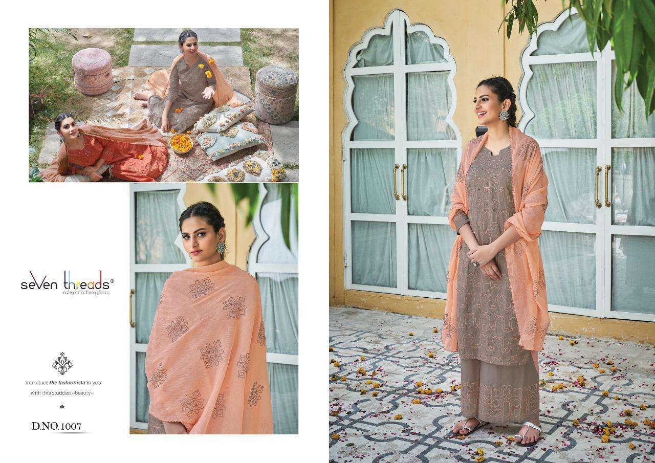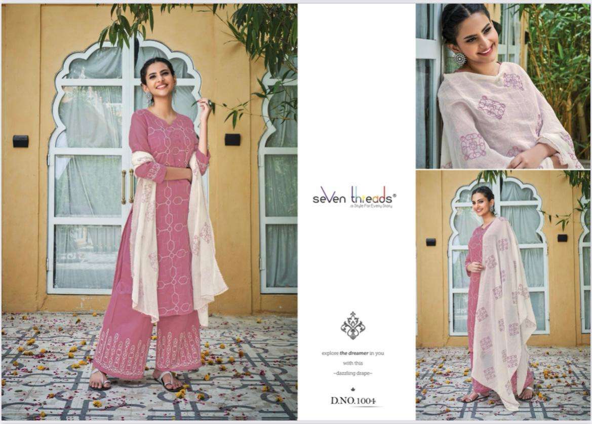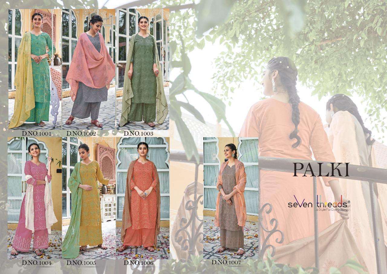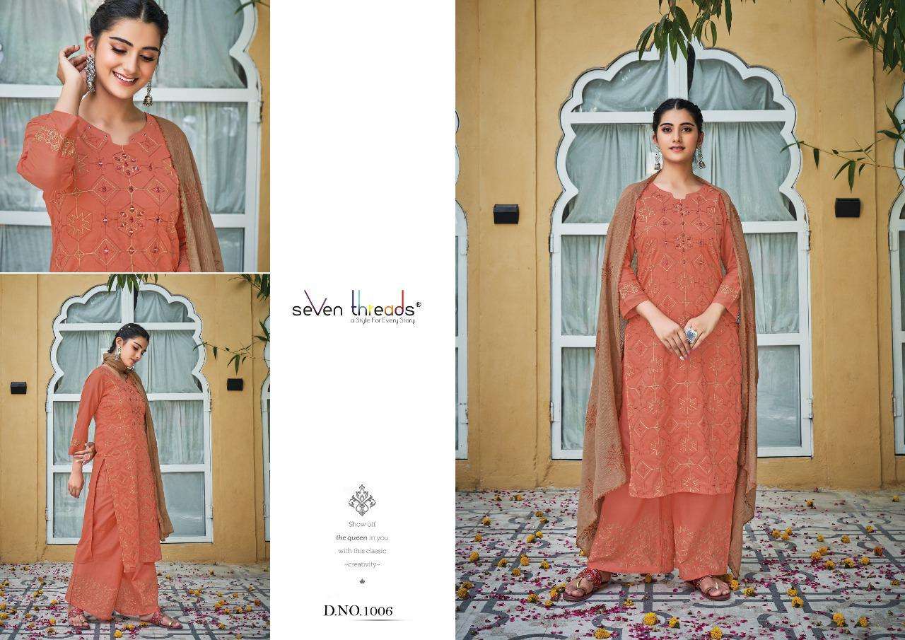 We’re proud to announce the launch of our new catalogue as part of the ongoing evolution of our brand ”SEVEN THREADS” Catalogue name:-PALKI * 🛍 - 7 Designs *👗Fabric - Top 👚 -Pure Mull Cotton (with cotton inner ) *🎗Size - M , L , XL , XXL , XXXL *🔸Length - 46+ *🧶Work - Top 👚 - Classic Chain Stitch Embroidery work with Elegant Hand Mirror Neck … ✅Type - Full stitched 💰- 1171/-Rs per pcs |