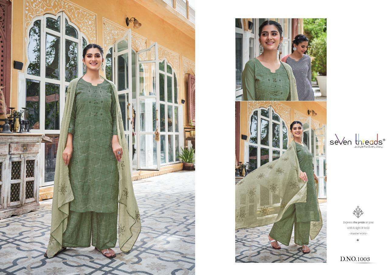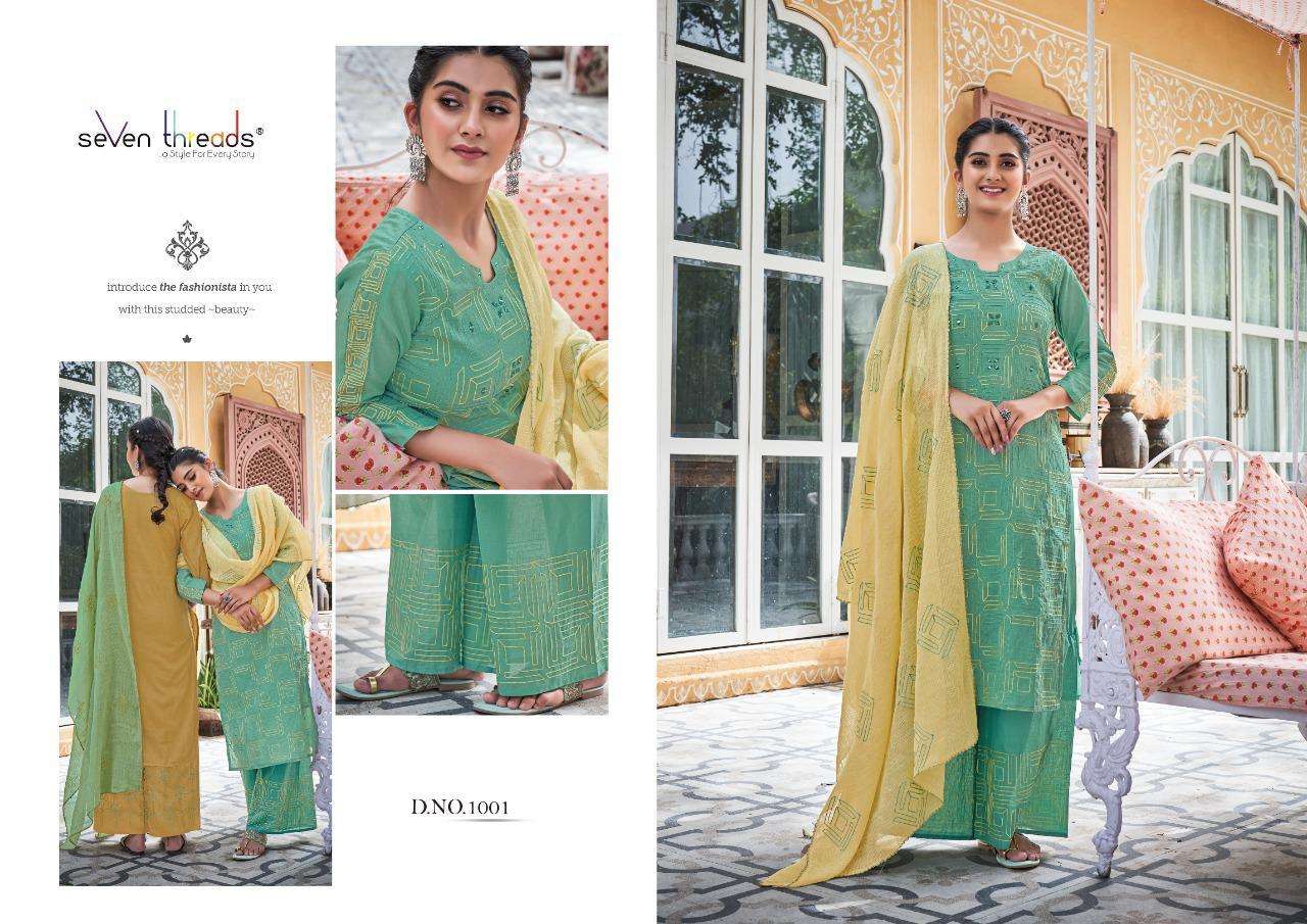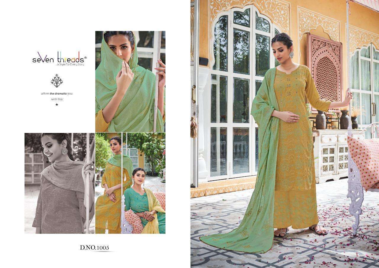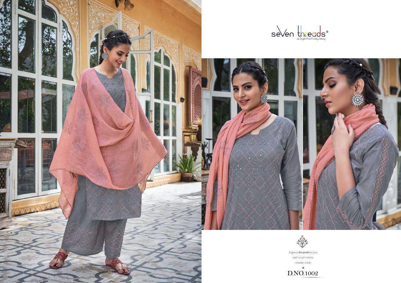 We’re proud to announce the launch of our new catalogue as part of the ongoing evolution of our brand ”SEVEN THREADS” Catalogue name:-PALKI * 🛍 - 7 Designs *👗Fabric - Top 👚 -Pure Mull Cotton (with cotton inner ) *🎗Size - M , L , XL , XXL , XXXL *🔸Length - 46+ *🧶Work - Top 👚 - Classic Chain Stitch Embroidery work with Elegant Hand Mirror Neck … ✅Type - Full stitched 💰- 1171/-Rs per pcs |